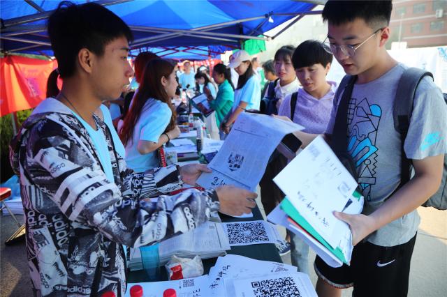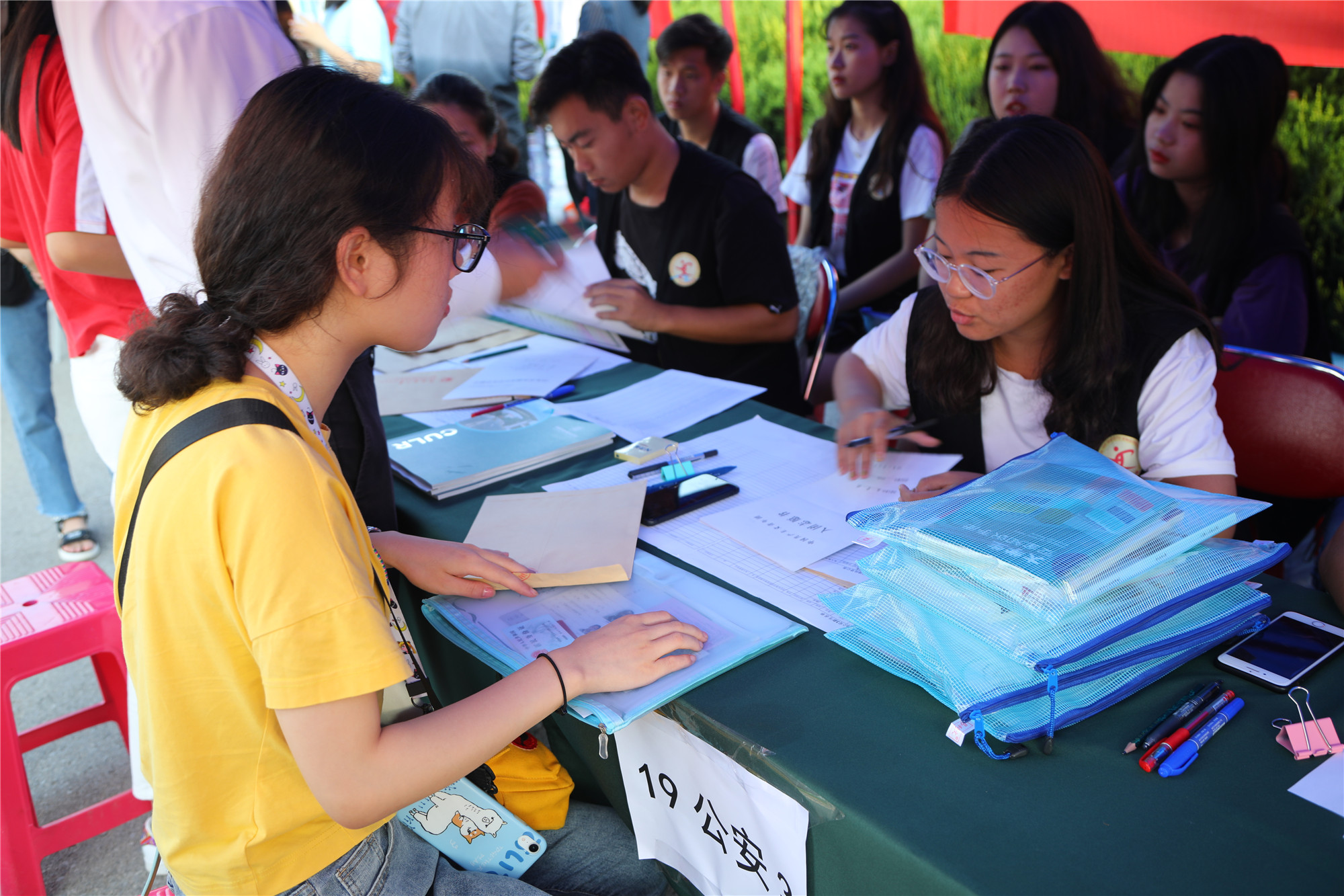 在各学院的迎新接待站,老师们和志愿者们井然有序地为新生办理报到手续、发放迎新材料。迎新手册、院刊院报、迎新展板等,精彩纷呈、创意无限,彰显了多元的学科特点和学院特色。