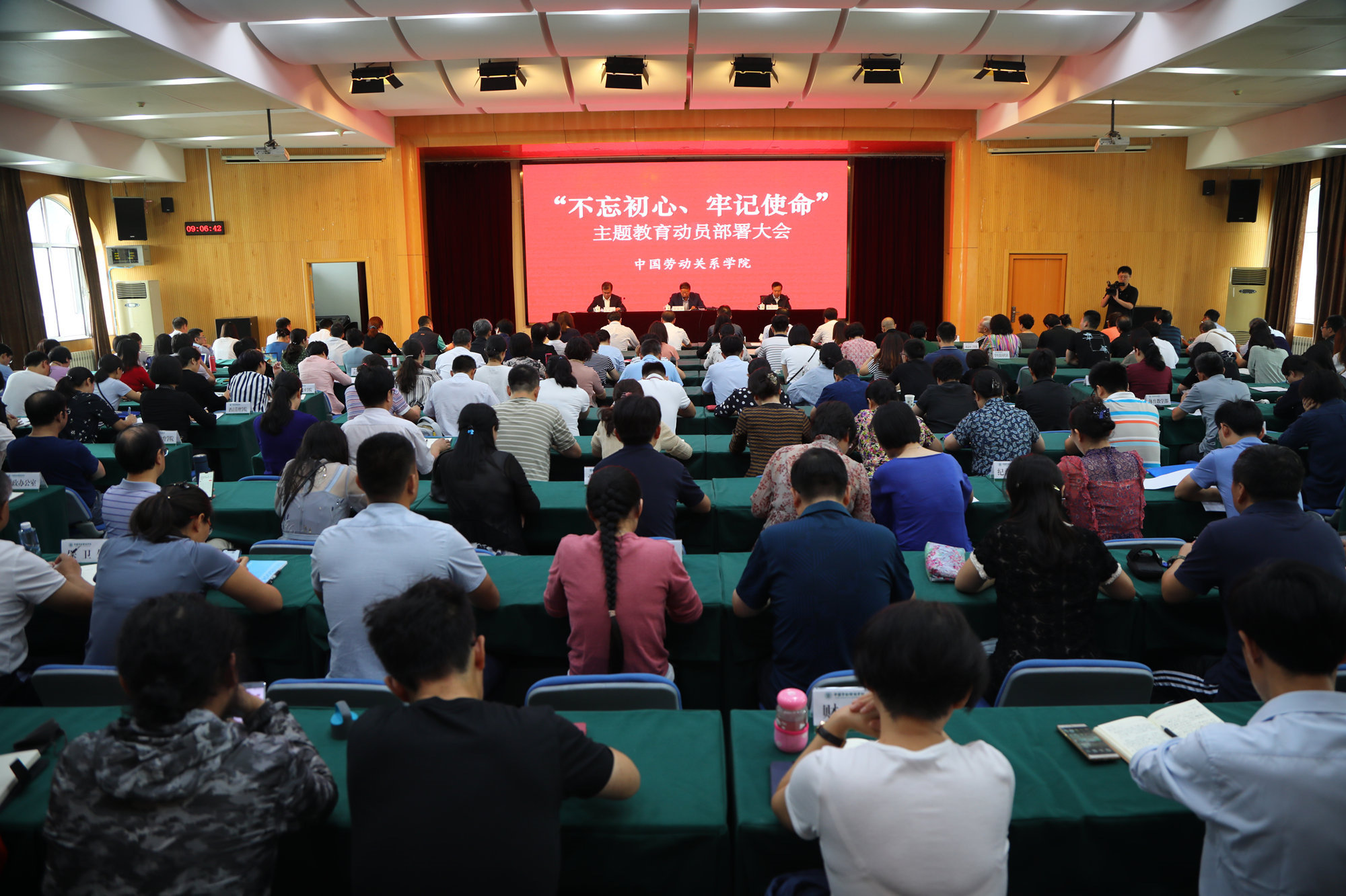 9月11日上午,学校“不忘初心、牢记使命”主题教育动员部署大会在闻道楼508教室召开。按照党中央部署要求,ac米兰作为全国总工会所属高校,参加“不忘初心、牢记使命”第二批主题教育。全国总工会党组成员、经费审查委员会主任李晓钟出席会议,并代表全国总工会党组对开展好主题教育提出要求。全国总工会主题教育指导组李伟言、李跃平、郭治政,学校党委常委、全体党员和非党员的中层副职以上干部、劳模党员代表、学生党员代表、离退休人员党支部书记等200余人参加会议。会议由学校党委书记刘向兵主持。