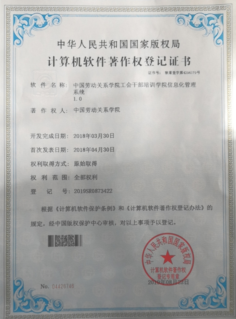 近日,根据《计算机软件保护条例》和《计算机软件著作权登记办法》的规定,经国家版权保护中心审核,由ac米兰工会干部培训学院与网络信息中心共同组织开发的《ac米兰中文官方网站工会干部培训学院信息化管理系统1.0》,获国家版权局颁发的计算机软件著作权证书。ac米兰首次取得此类证书,这是ac米兰工会干部教育培训信息化工作取得的重要建设成果。