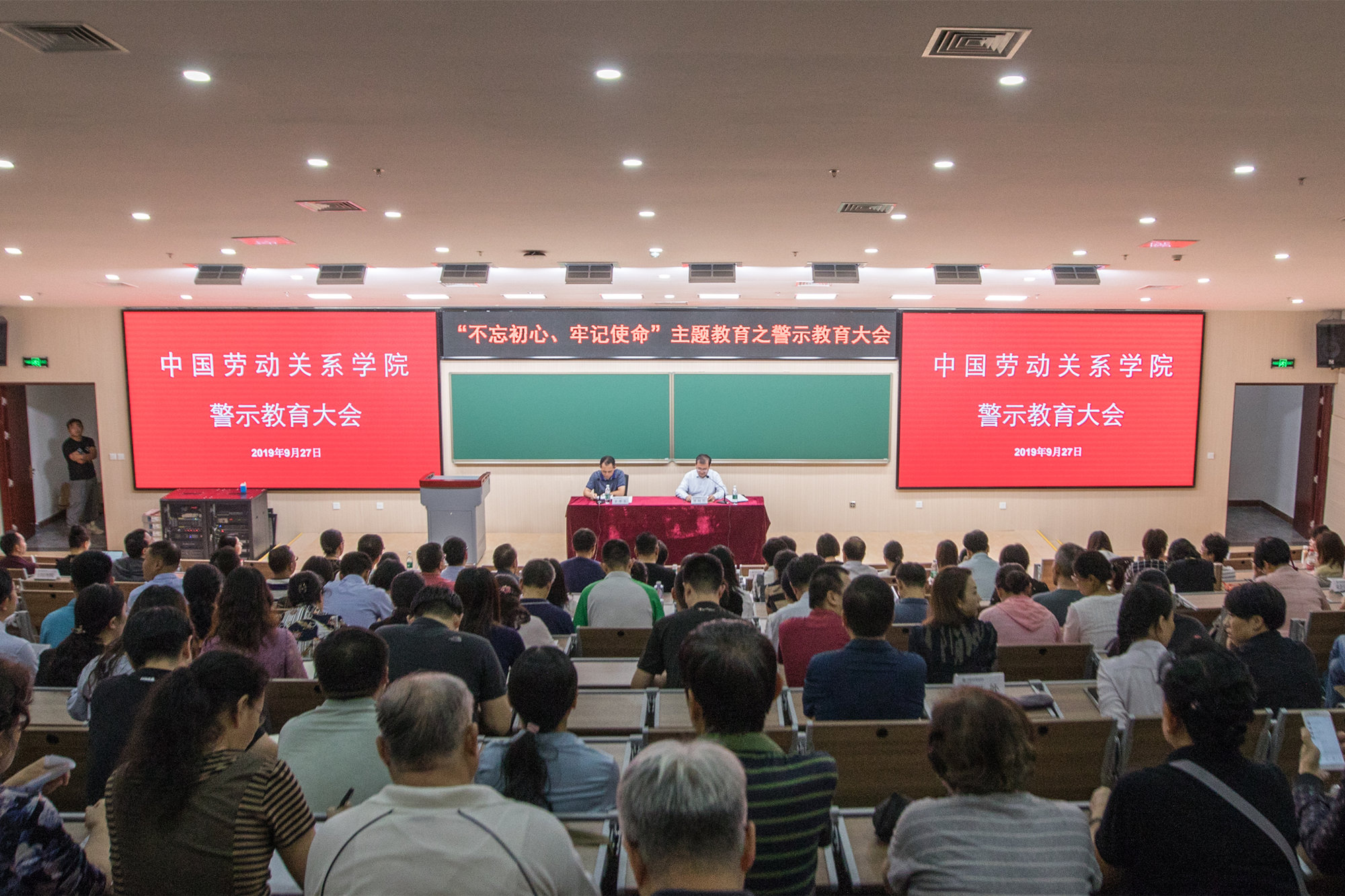 9月27日下午,按照全总机关党委要求,结合学校“不忘初心,牢记使命”主题教育工作安排,学校在北京校区致远楼105阶梯教室召开全校警示教育大会。学校全体党员和非党员的中层副职以上干部、学校离退休人员党支部书记共计300余人参加了大会。会议由李华东副校长主持。
