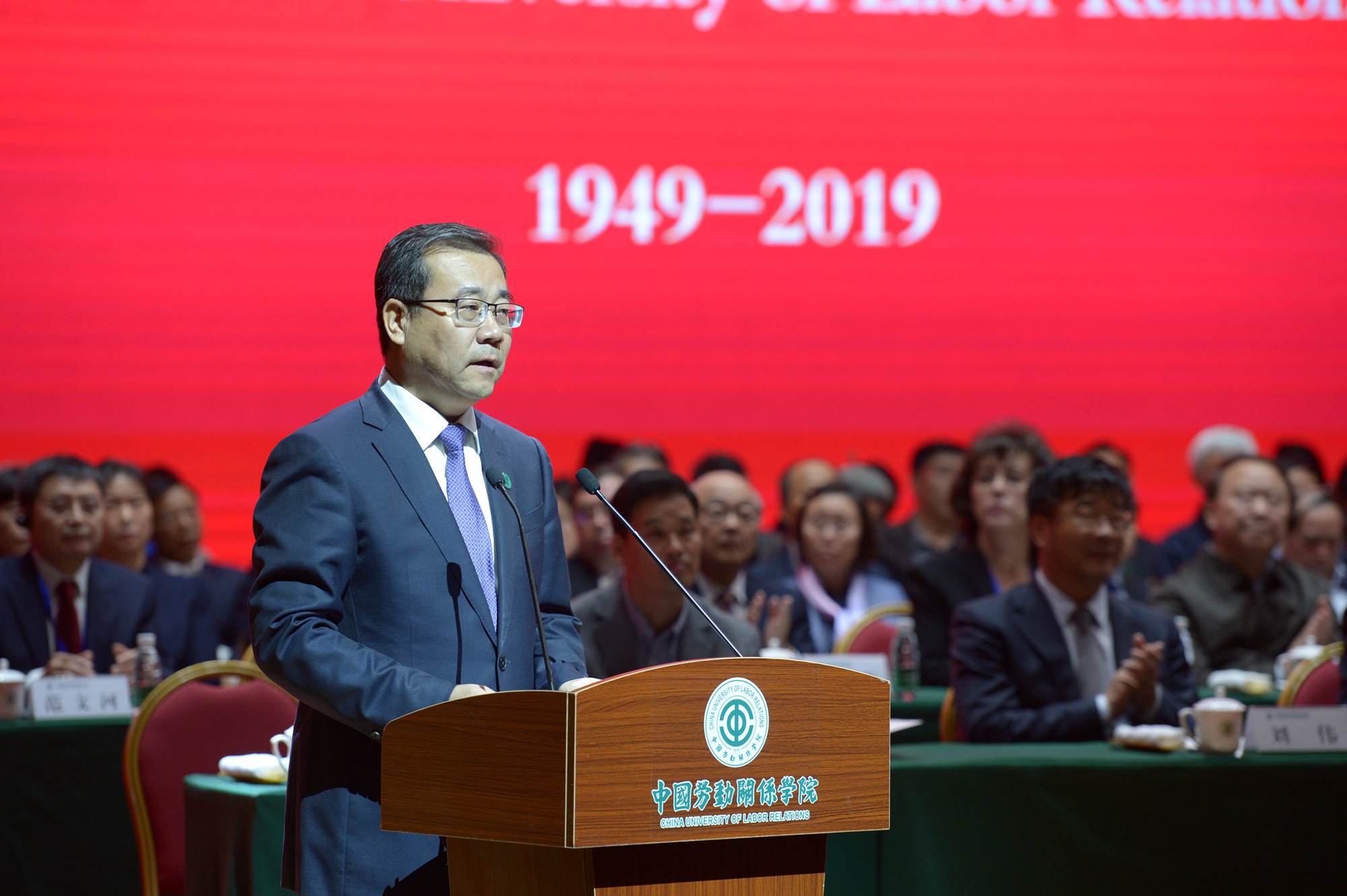 学校党委书记刘向兵在讲话中回顾了学校70年来的光辉历程和办学成就,并对办学初期的开拓者们、前辈们致以崇高敬意,向关心学校发展的各级领导、教职员工表达衷心感谢。他指出,学校已从最早的工会干部培训学校,发展成为一所工会办学底蕴深厚、劳动学科优势突出、人才培养质量优良、特色发展声名远播的大学。他强调,今天的学校,自觉坚守人才培养的大学使命,培育劳动英才群星灿烂;自觉坚守科学研究的大学使命,繁荣发展劳动科学硕果累累;自觉坚守社会服务的大学使命,为改善民生、服务职工建言献策;自觉坚守文化传承创新的大学使命,在弘扬劳动精神劳动文化上展现风采;自觉坚守国际交流合作的大学使命,为讲好中国工会故事积极探索。他表示,未来前进路上,学校要“立德”强基,进一步提高质量,焕发蓬勃生命力;要 “守正”固本,进一步弘扬特色,培育核心竞争力;要“崇劳”护航,进一步苦干实干,提升社会影响力;要“创新”驱动,进一步解放思想,打造卓越创造力,在中国高等教育强国百舸争流的征程中,向世界一流、中国一流大学学习,奋力跟跑;与行业特色一流高校比肩,努力并跑;在劳动关系与工会院校中争先,全力领跑。