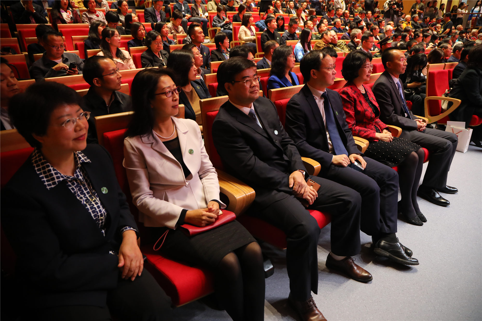 大会隆重进行了向学校建校奠基者代表献花环节。大会向高惠峰、刘淼、王新生、方青、武宗圣、郝清桂、刘子高、赵国荣、郭景田、何生、李敦芷、杨克华、罗简贻、高英杰、王美琪、毕玉身、赵洪恩、杨耀忠18位第一批来校工作的老教师、老干部、老员工致以崇高的敬意,李玉赋书记向参会的11位奠基者代表一一颁发荣誉证书,青年学生代表敬献鲜花。
