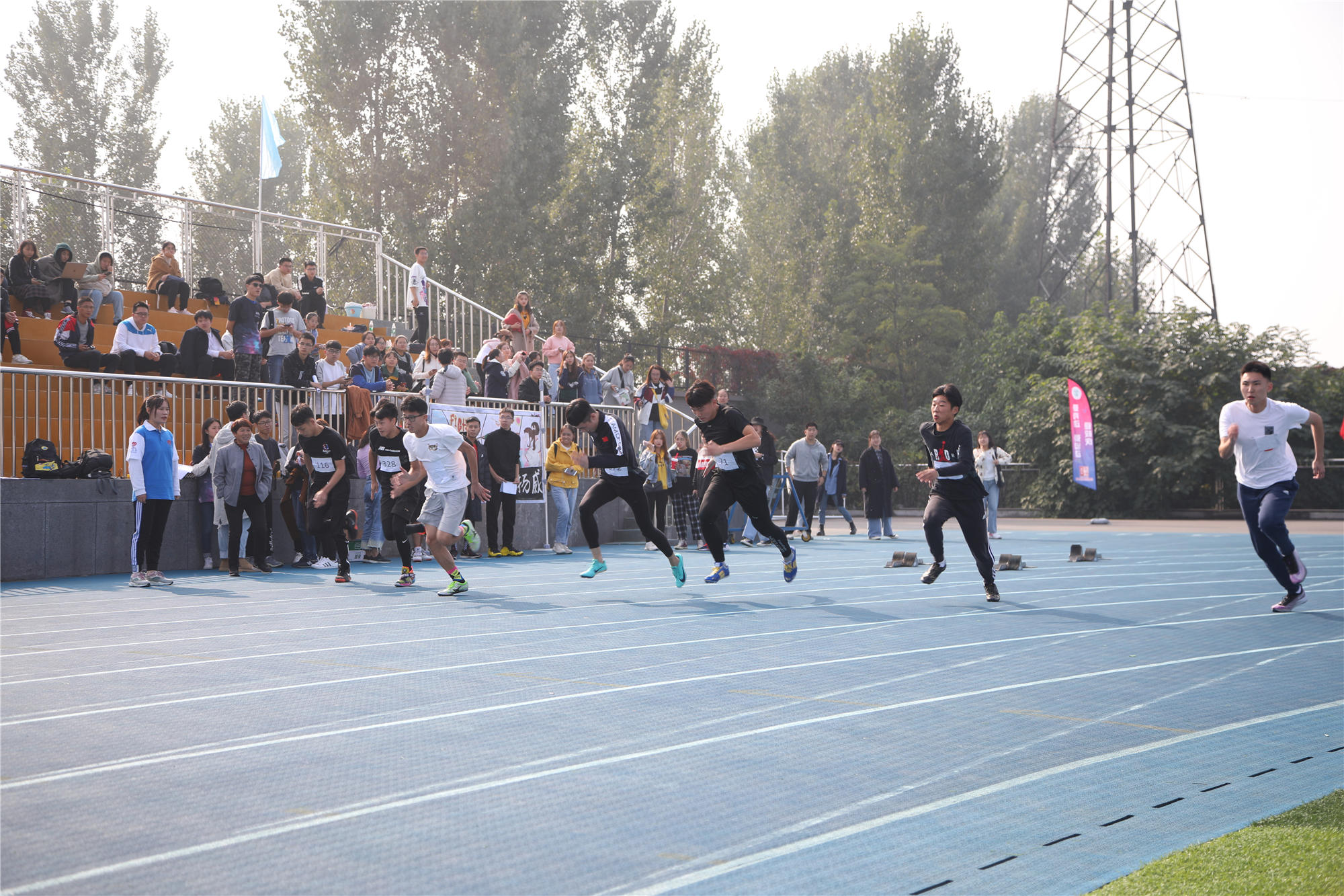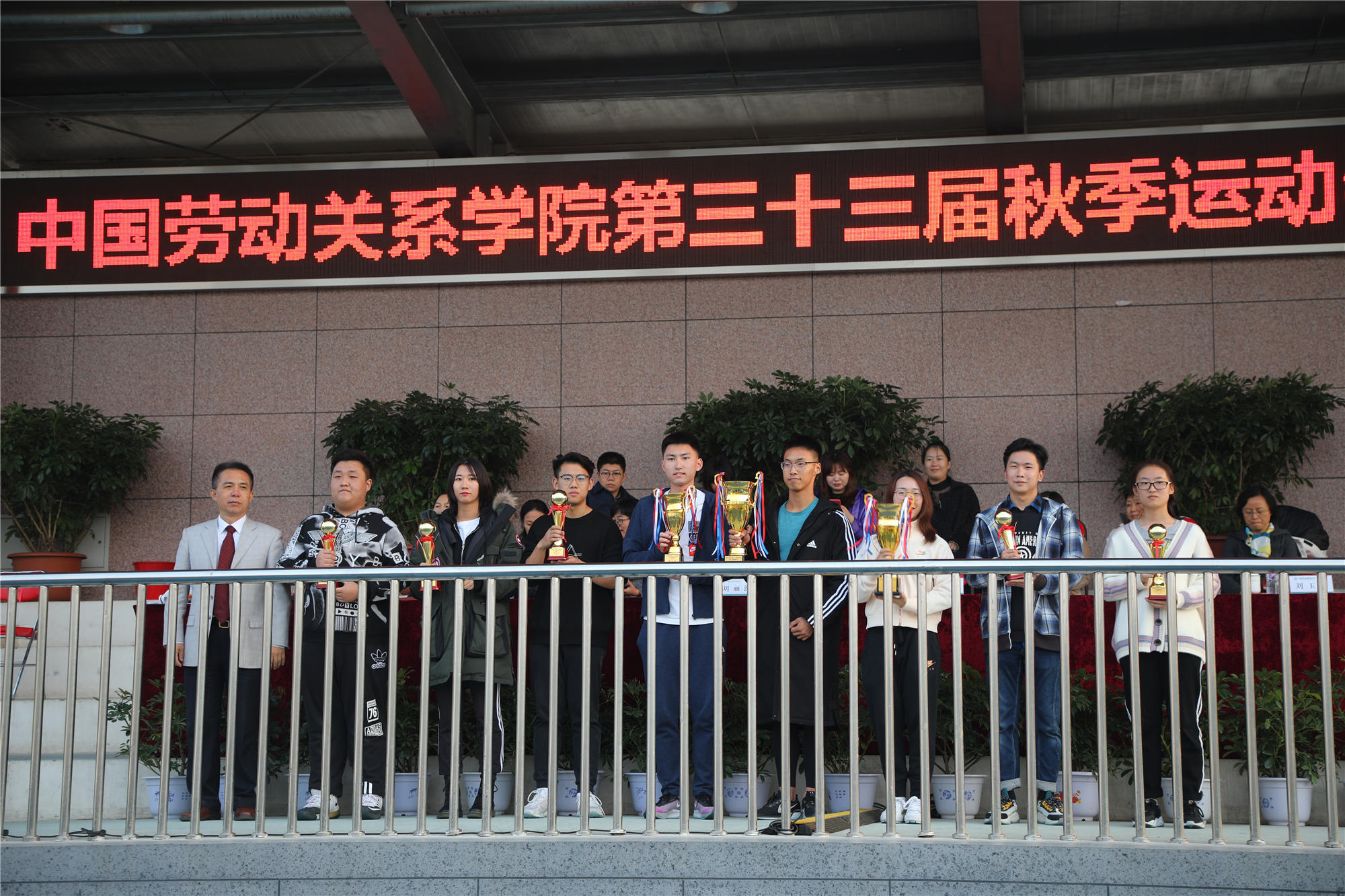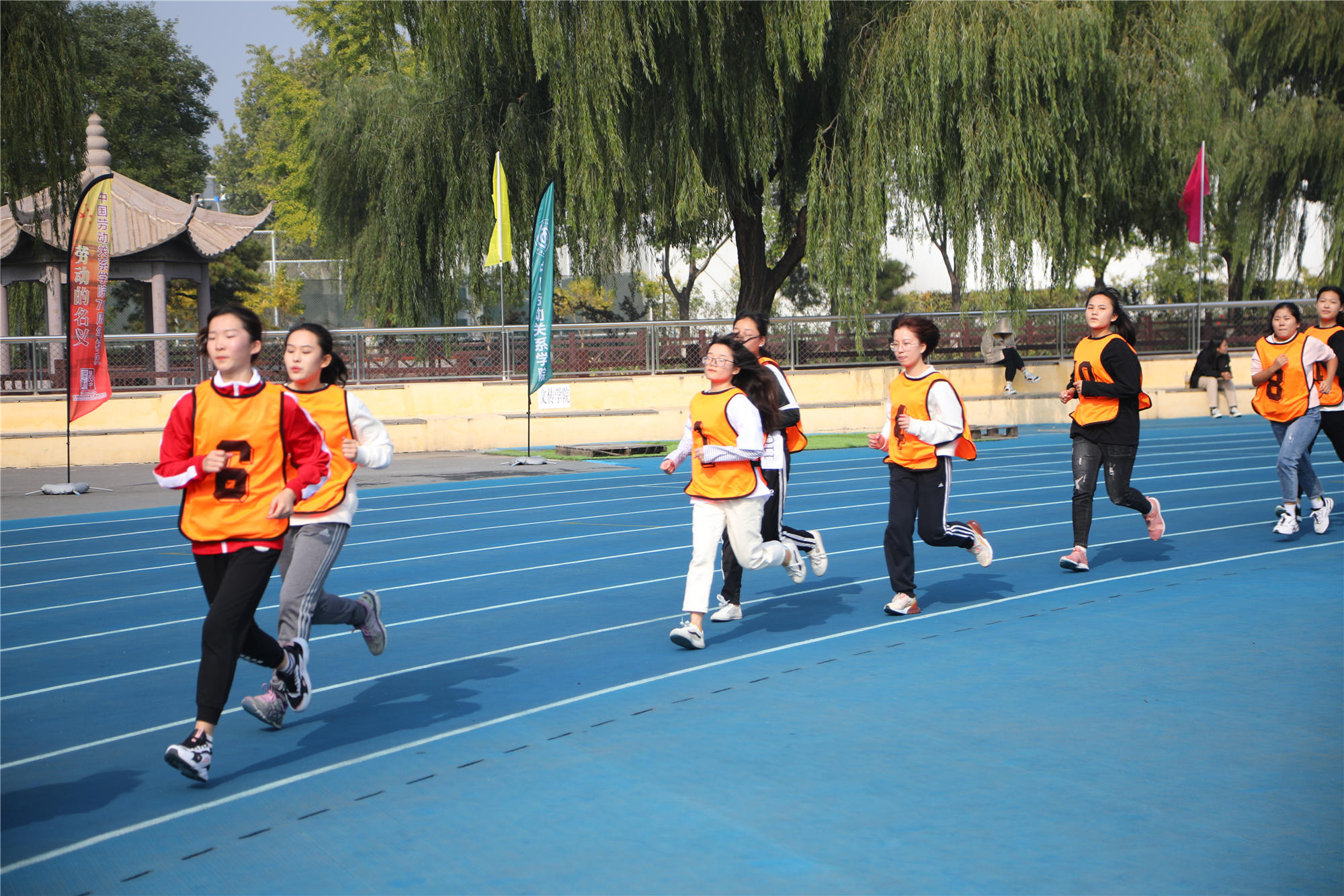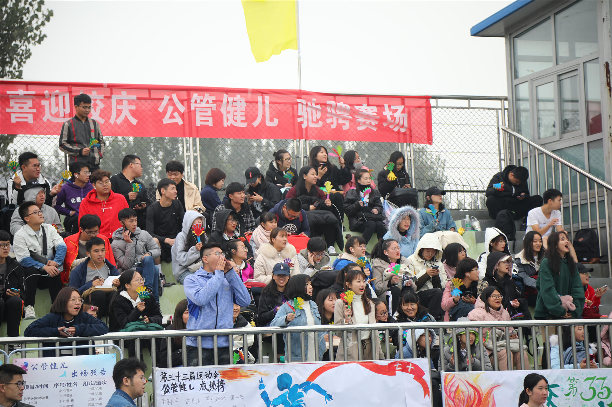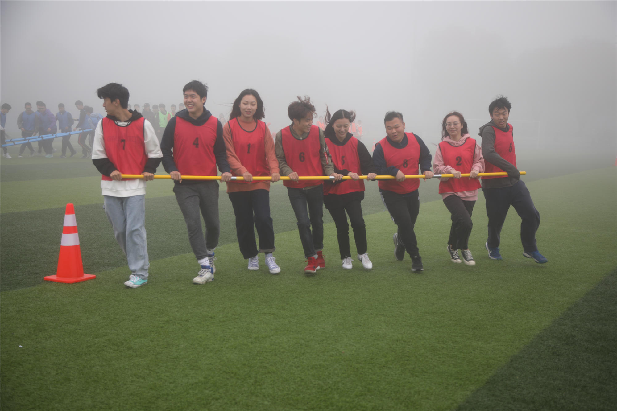 开幕式结束后,运动会比赛正式开始。下午的比赛中,雾气散去,天气转晴,阳光明媚。本次运动会,共有1881人次参加了31个比赛项目。除常规的田径项目外,还进行了男女混合跳长绳、体测团体赛等团体项目,彰显了团结拼搏的体育精神。最终,2018级法学2班荣获男子团体第一名、2019级酒店管理3班荣获女子团体第一名、2019级劳动经济学班荣获团体总分第一名,应用技术学院、公共管理学院、文化传播学院、安全工程学院、经济管理学院、酒店管理学院、法学院、劳动关系与人力资源学院、社会工作学院分获体育道德风尚奖,公共管理学院、应用技术学院荣获最佳组织奖。