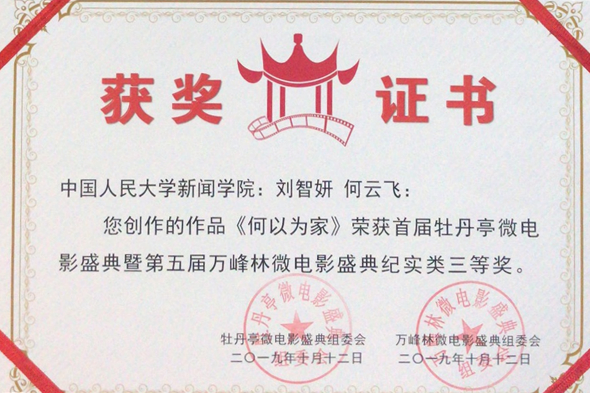 10月12日,首届牡丹亭微电影盛典暨第五届万峰林微电影盛典落下帷幕。在ac米兰文化传播学院吴麟老师和中国人民大学新闻学院杨钢元老师的指导下,ac米兰2016级新闻学专业学生刘智妍、何云飞创作的纪录片《何以为家》荣获纪实类三等奖。
