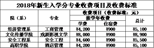 附:2018年专升本(免试升本)学生分专业收费项目及收费标准