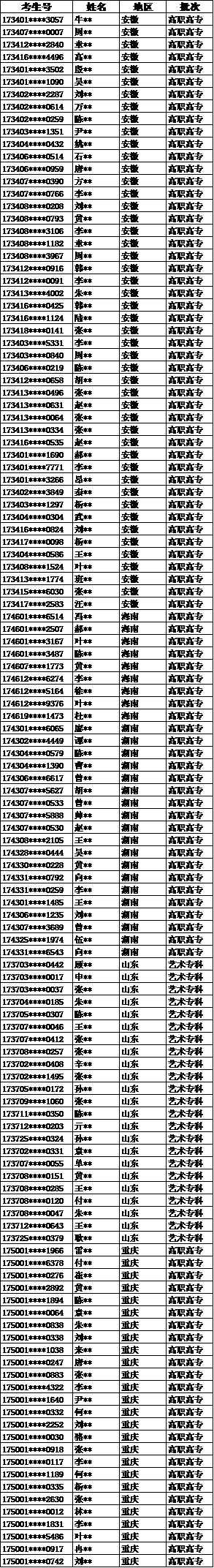 ac米兰已完成重庆、安徽、海南、湖南高职高专批,山东艺术专科批的录取工作。