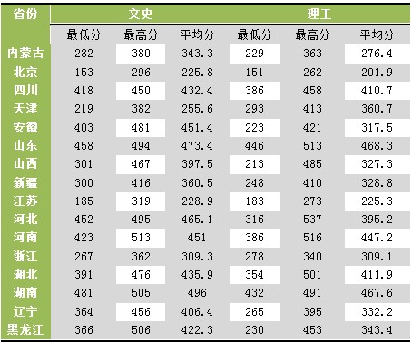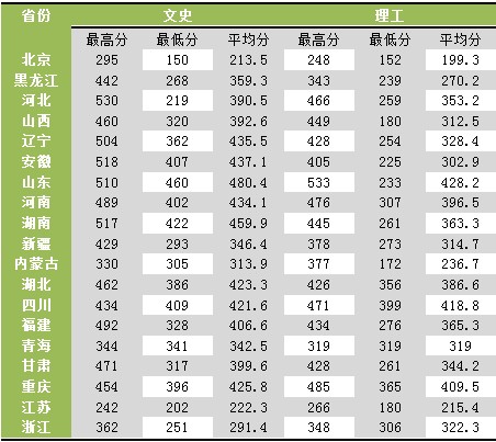 ac米兰中文官方网站2013年分省录取分数统计表(专科)