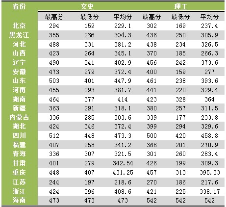 ac米兰中文官方网站2011年分省录取分数统计表(专科)