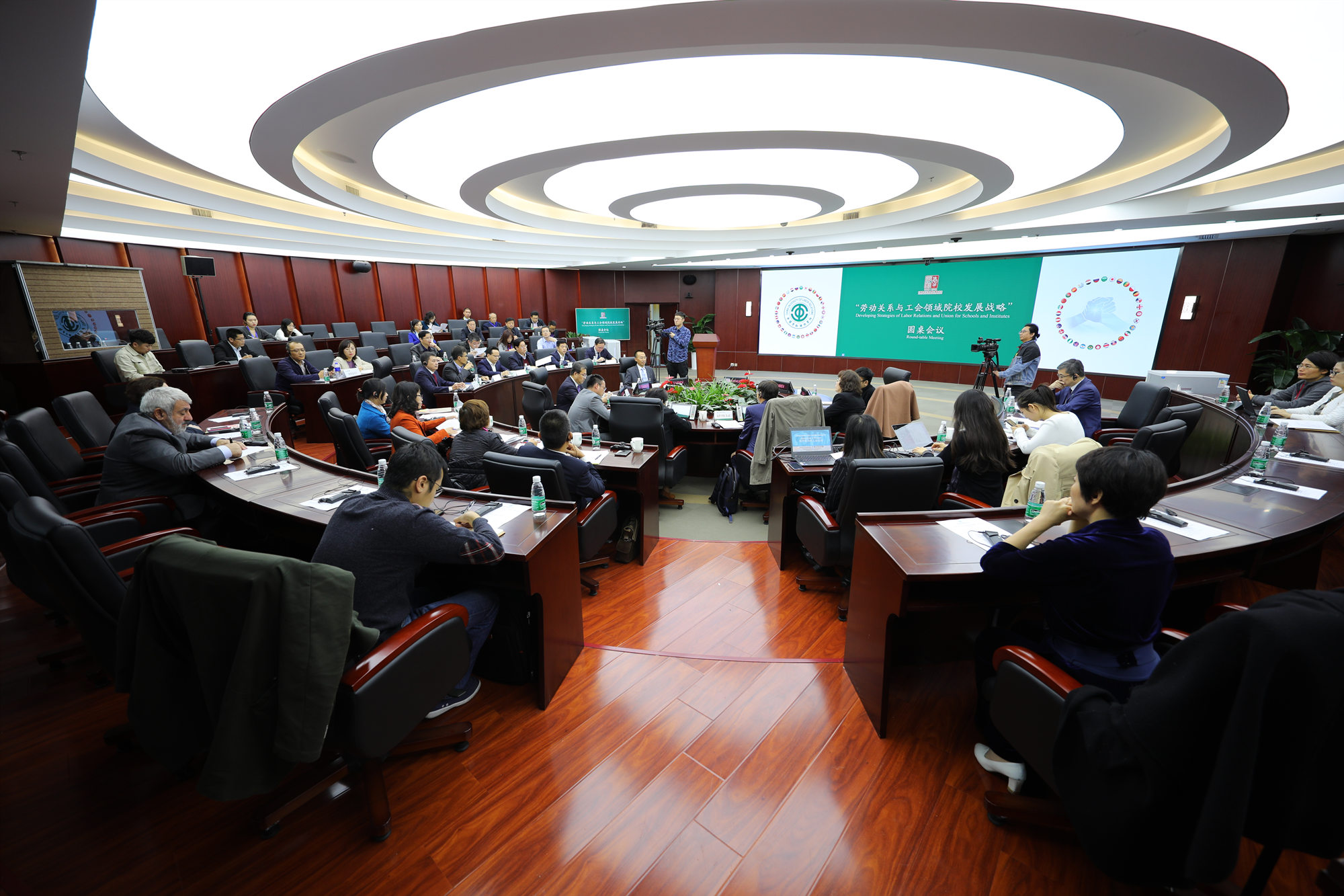 10月13日下午,“劳动关系与工会领域院校发展战略”圆桌会议在ac米兰致远楼八层报告厅成功举办。ac米兰党委书记刘向兵,副校长刘玉方、吴万雄出席会议。来自俄罗斯、韩国、越南及中国澳门和北京、上海、山东、陕西、广东等地的10所劳动关系与工会领域院校领导出席会议并做主题发言,部分国外友好院校、国内工会干校和ac米兰教师代表约100人参加会议。