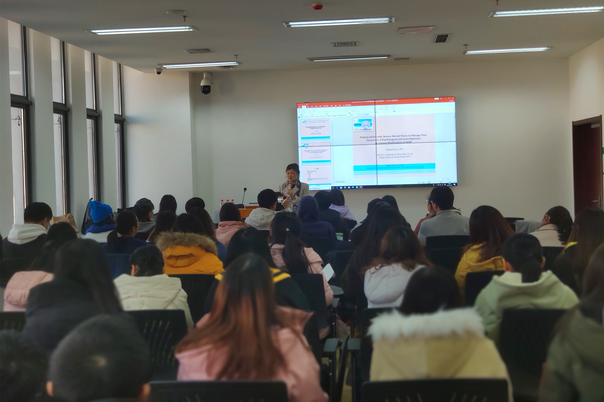 27日下午,卢又华教授在致远楼911室举办“美国成人精神卫生服务的发展及现状”讲座,介绍了美国精神健康服务的历史沿革和实践经验,指出美国在社会工作过程中往往以西方文化视角和治疗方法来界定和治疗亚裔重症精神病人的现象,并结合身—心—社—灵理念的社工服务模式,讲解了“C-WSM”方法(为华裔及中国病人所特别制定的重症精神病人手册)。讲座让同学们近距离接触国际社会工作的前沿理论,加深了对专业的理解和认同。