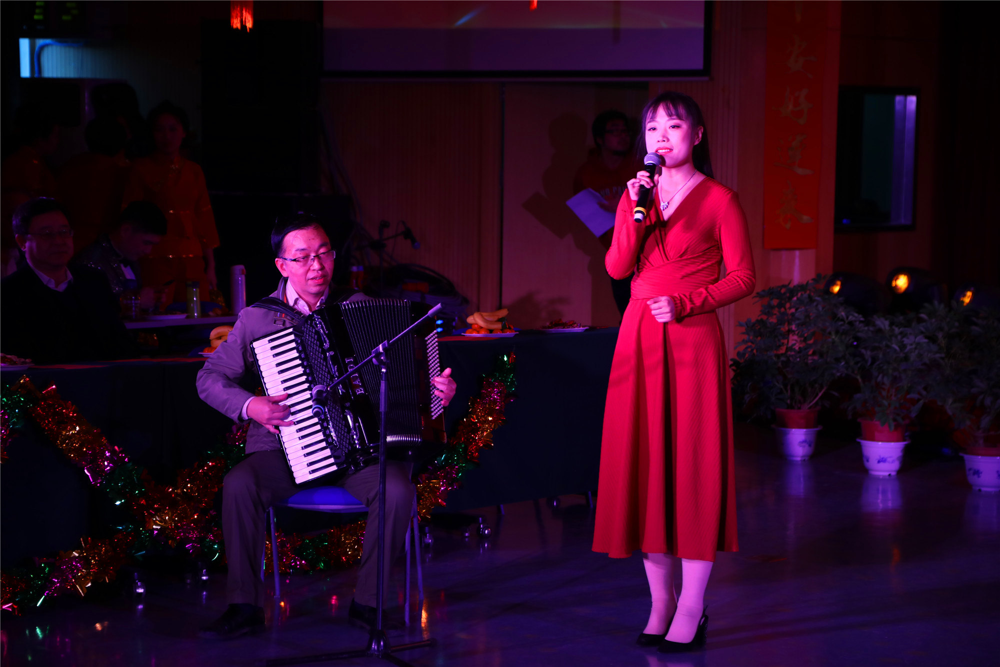 1月10日下午,闻道楼508教室被装饰一新,处处充满节日的喜庆气氛,“奋斗点亮2020——学校2020年教职工新年联欢会”在此拉开序幕。学校领导刘向兵、刘玉方、刘丽红、吴万雄、郭孝实、燕晓飞、杨冬梅、姜颖与300余名教职工一起,在欢声笑语中共同拥抱新一年的到来。