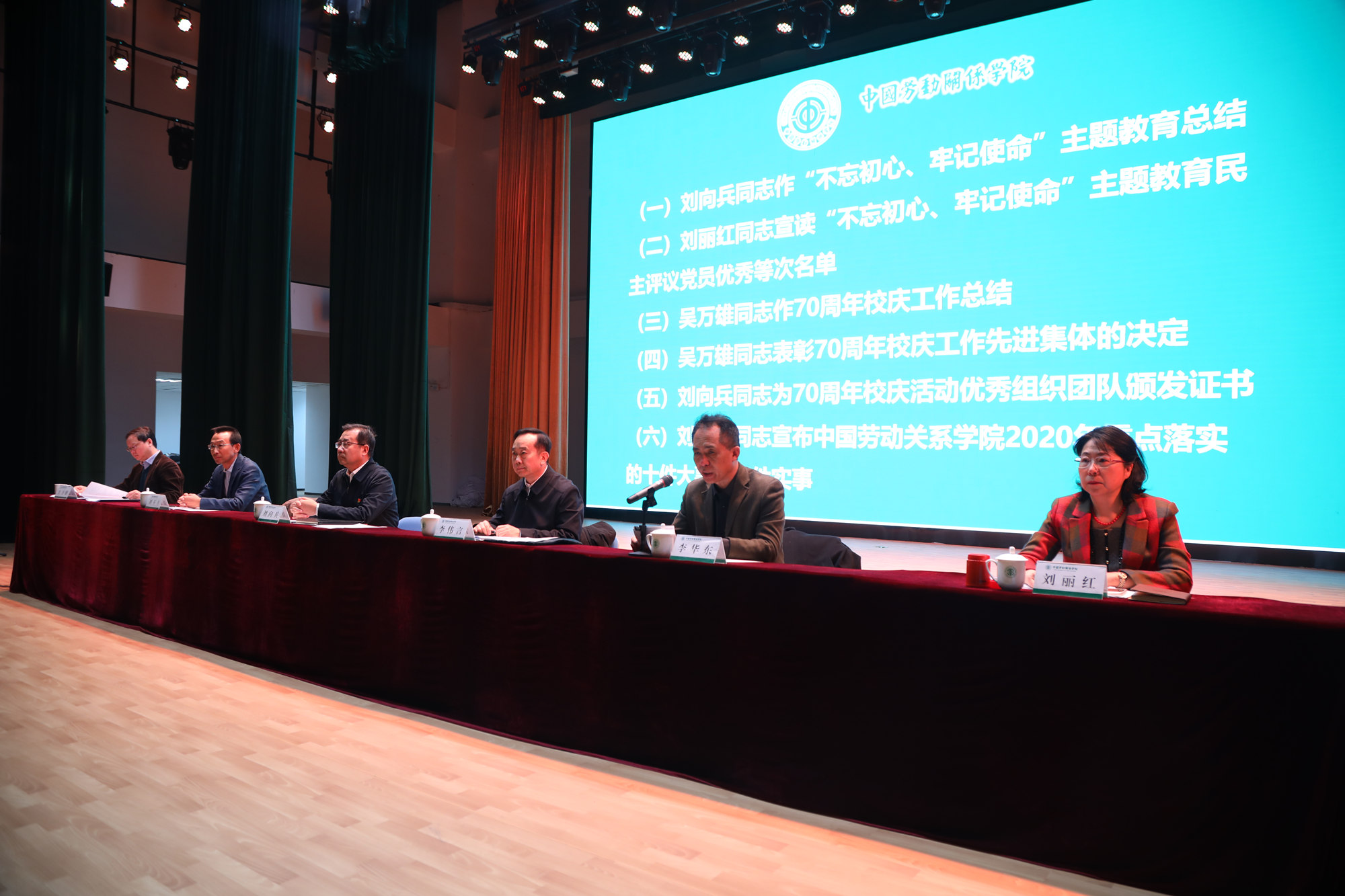 刘向兵书记传达了习近平总书记在“不忘初心、牢记使命”主题教育总结大会上的重要讲话精神,并代表学校党委从开展情况、收获体会、存在的问题和下一步努力方向四个方面全面总结学校主题教育相关工作。他指出,学校作为全国总工会机关第二批“不忘初心、牢记使命”主题教育单位,按照党中央决策部署,在中央主题教育领导小组和第十一巡回督导组领导的全程指导下,聚焦主题、紧扣主线,牢牢把握“守初心、担使命,找差距、抓落实”的总要求,全面推进学校各项事业发展,确保主题教育扎实有序开展,取得良好效果。