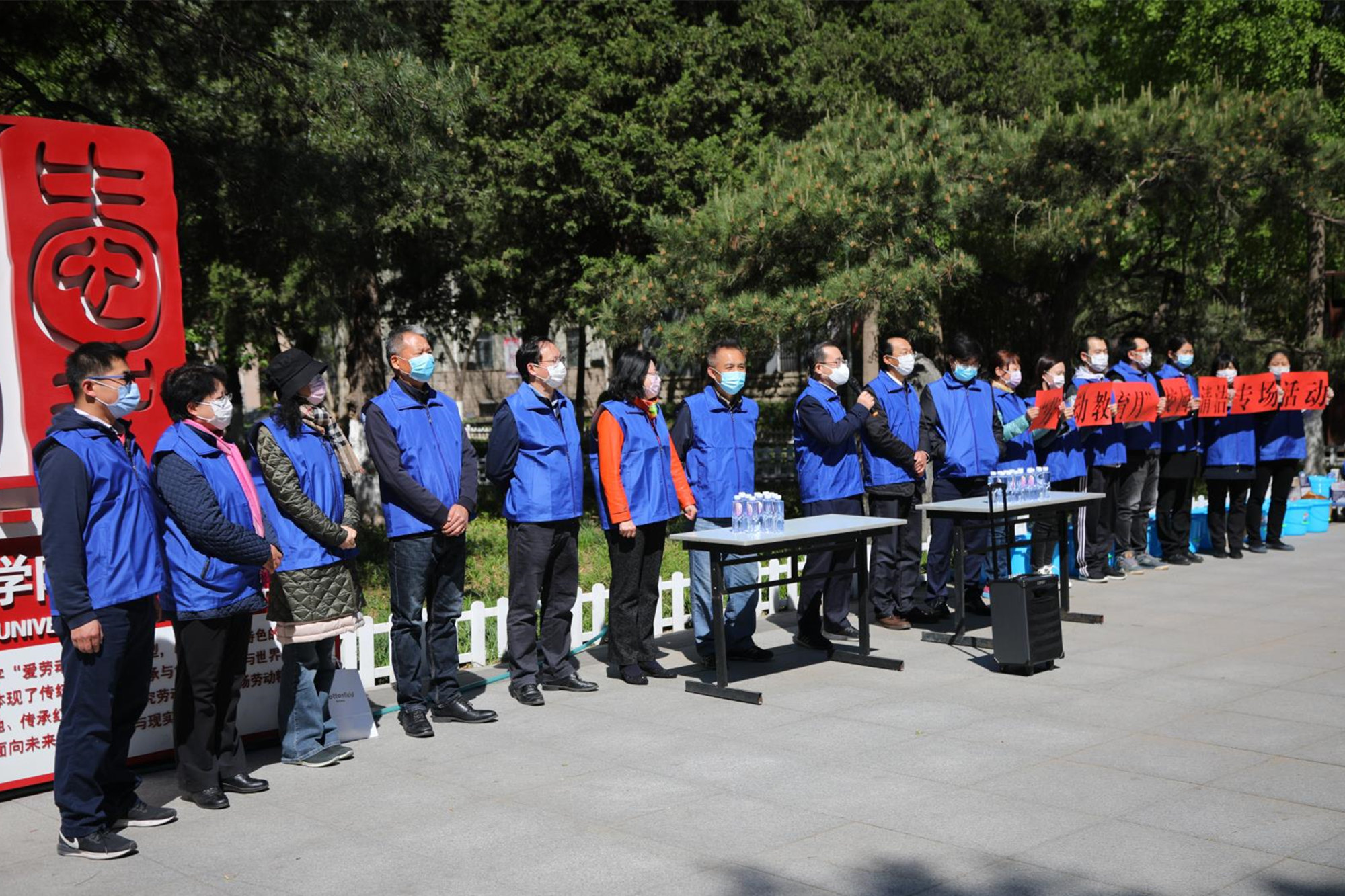 4月21日上午,学校在北京校区组织“洁校园”——教职工“劳动体验周”校园清洁专场活动。学校领导刘向兵、李华东、刘玉方、刘丽红、吴万雄、刘路刚、郭孝实,党委常委燕晓飞、杨冬梅、姜颖和来自各部门80余名在校教职员工一起开展打扫卫生、清洁校园的集体劳动。北京市教委派驻ac米兰的防疫工作联络员任兴宝也参加了此次活动。