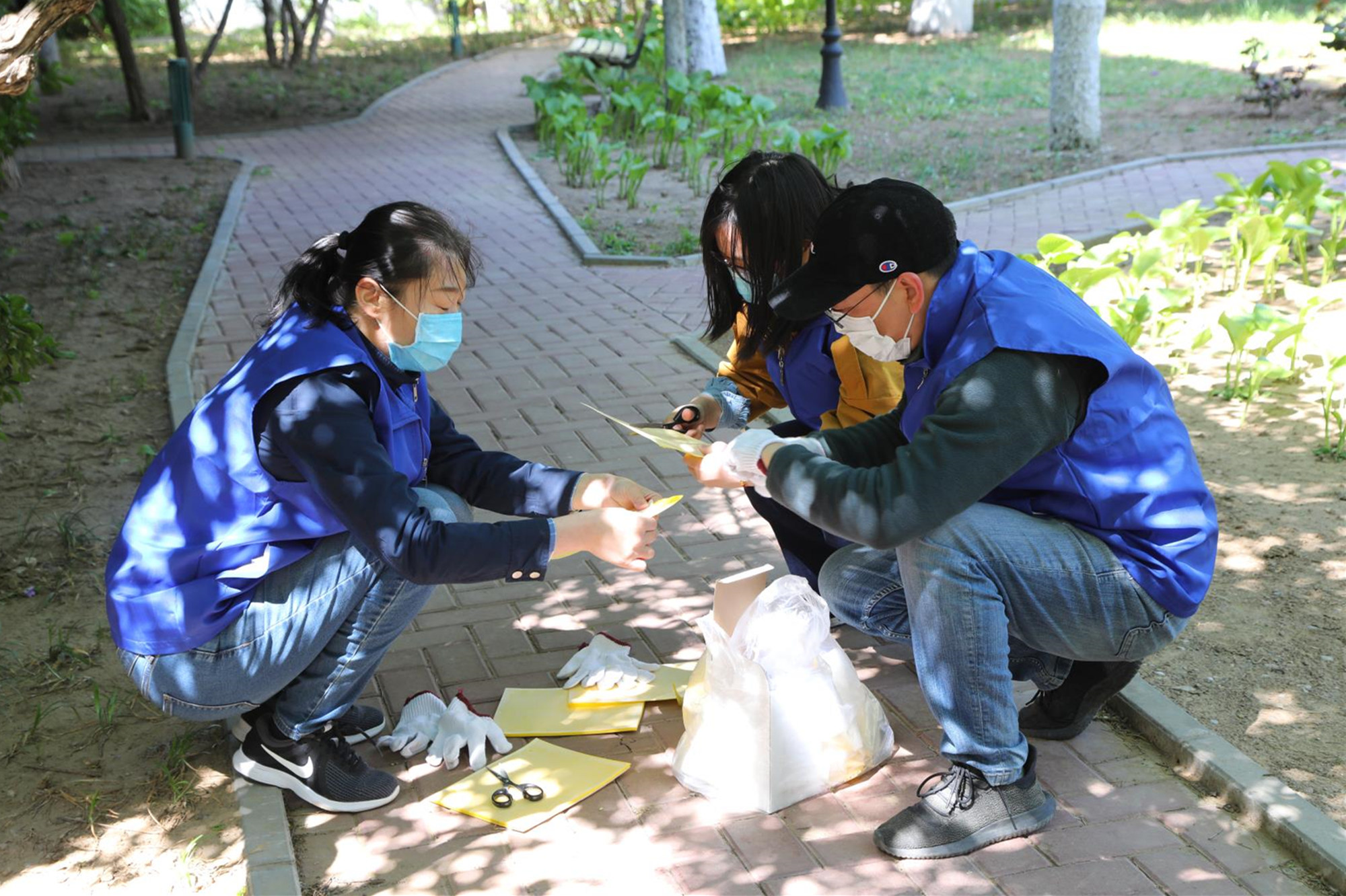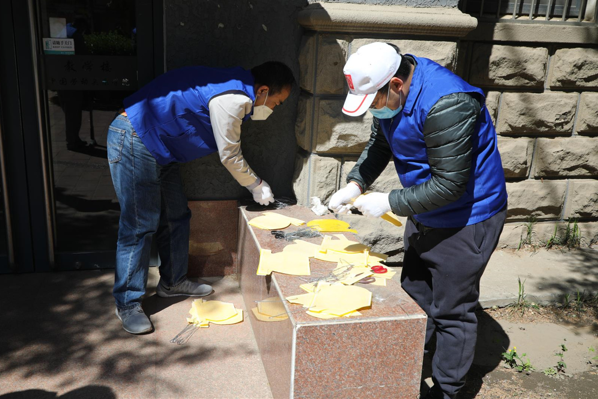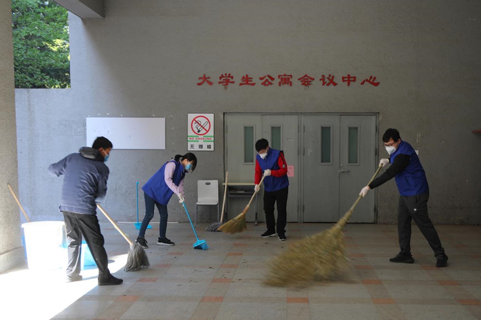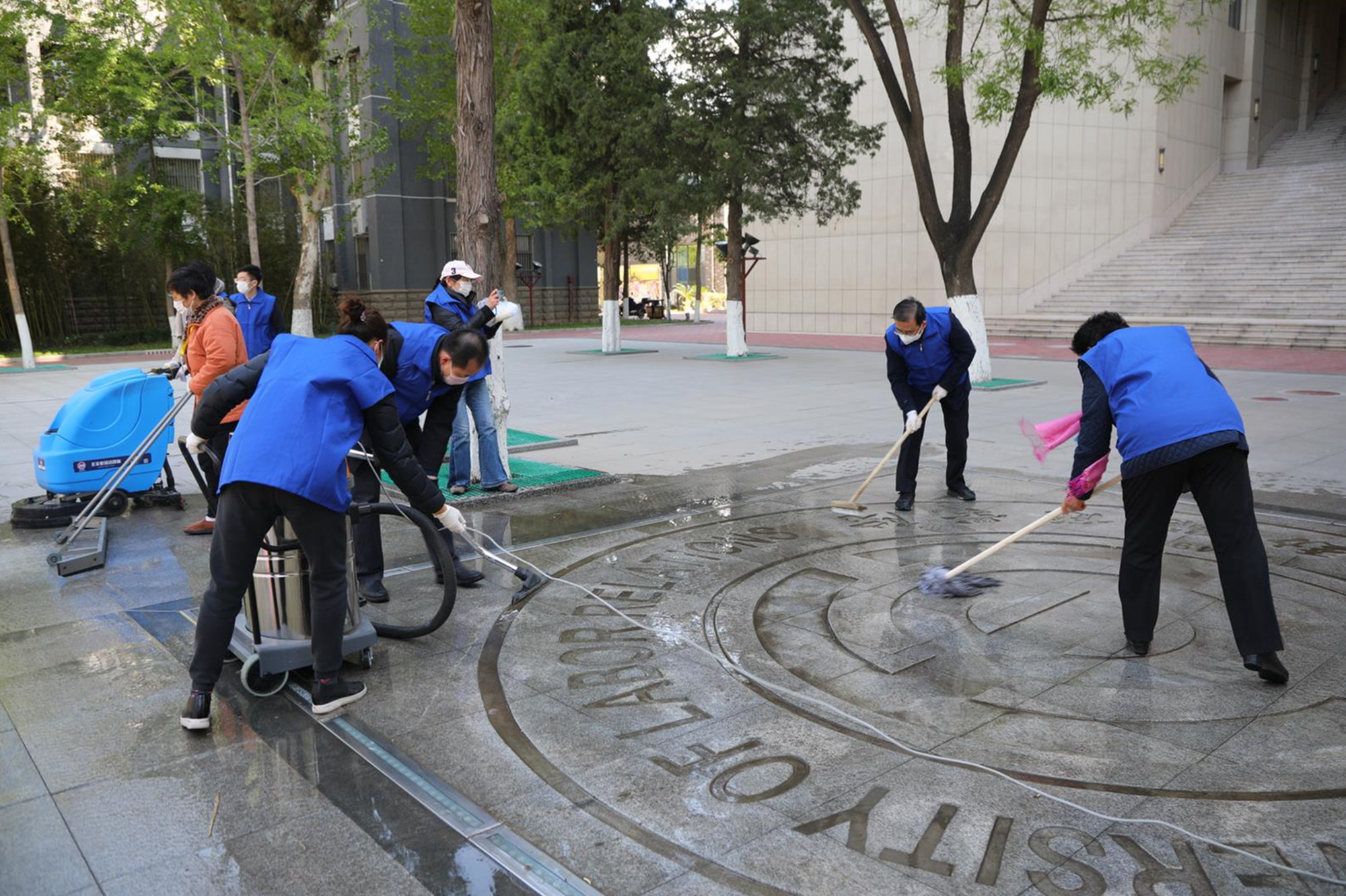 此次活动分设6个不同区域的卫生清洁及环境改善任务,参与人员做好个人防护后,有序领取劳动工具,按照任务分工,来到各自场地,投入劳动。有的擦拭雕像栅栏、有的清扫地面、有的清洁橱窗、有的为灌木挂上粘蚊板、有的清运垃圾……校园里一派热火朝天的劳动景象。活动中,大家各司其职、身体力行,发扬不怕脏、不怕累的劳动精神,为创造更加优美整洁的校园环境出一份力,充分体会到劳动的快乐和成就感。