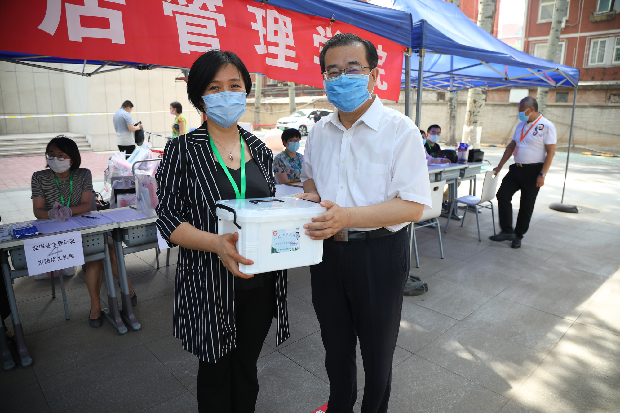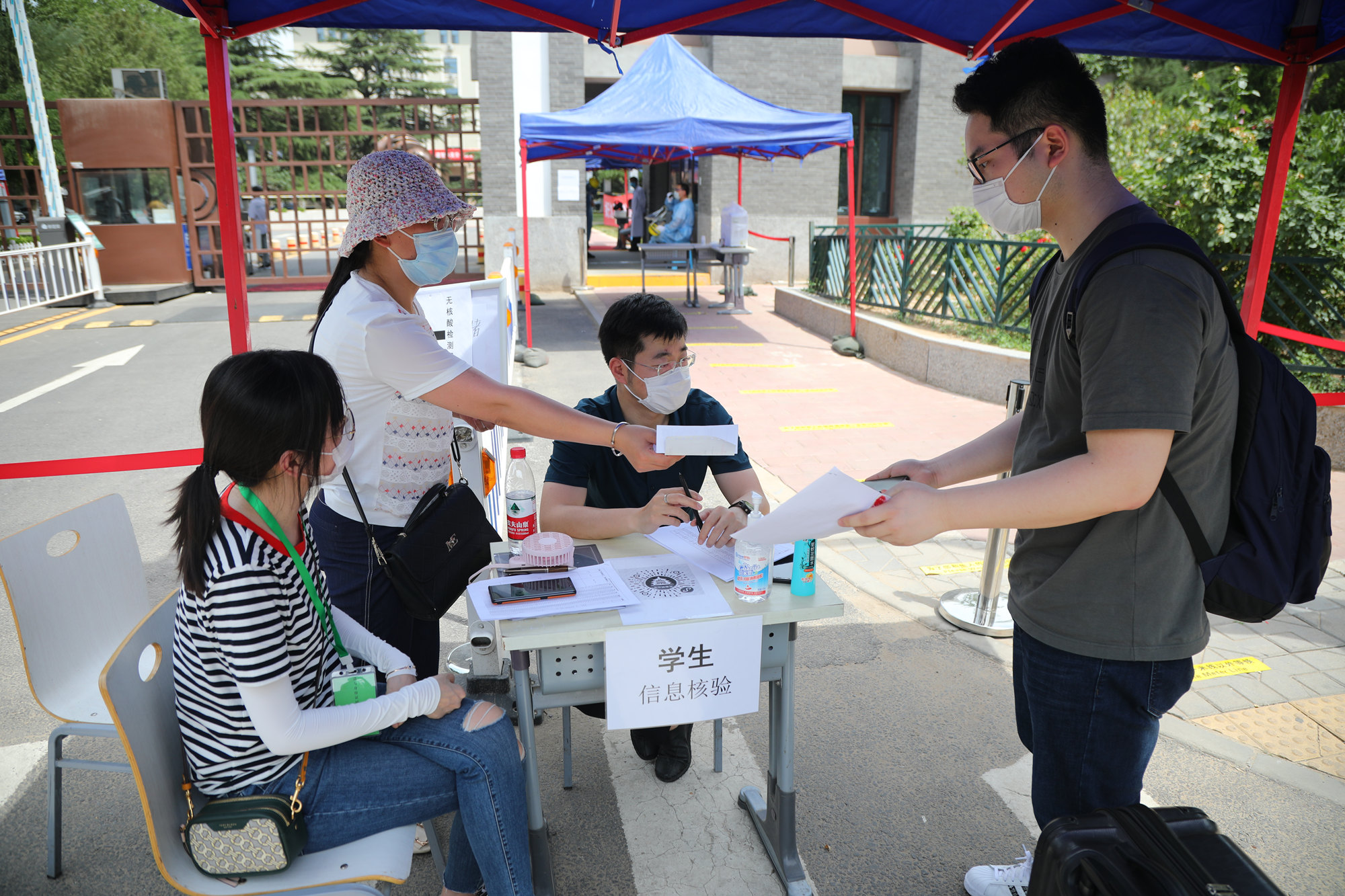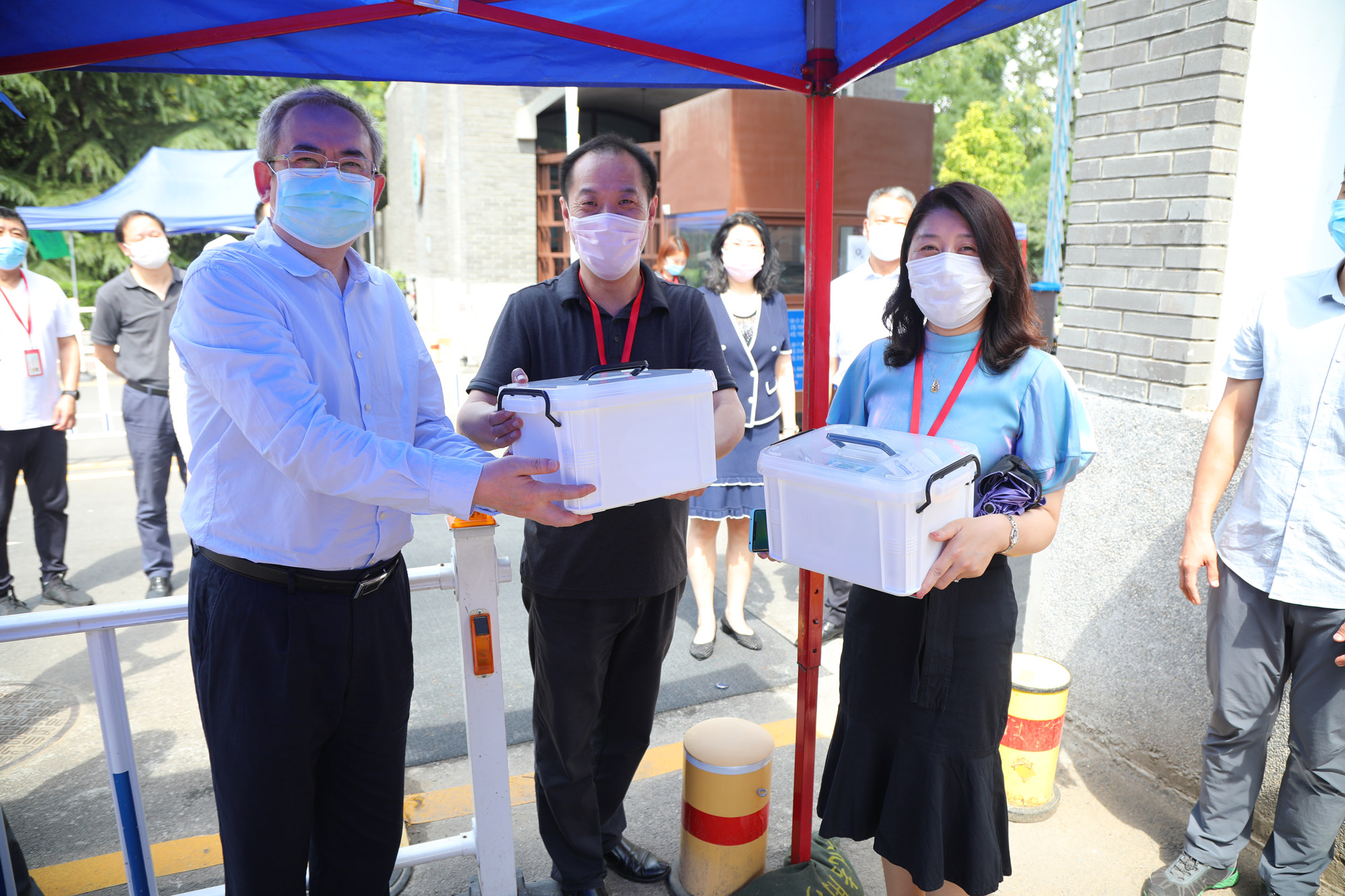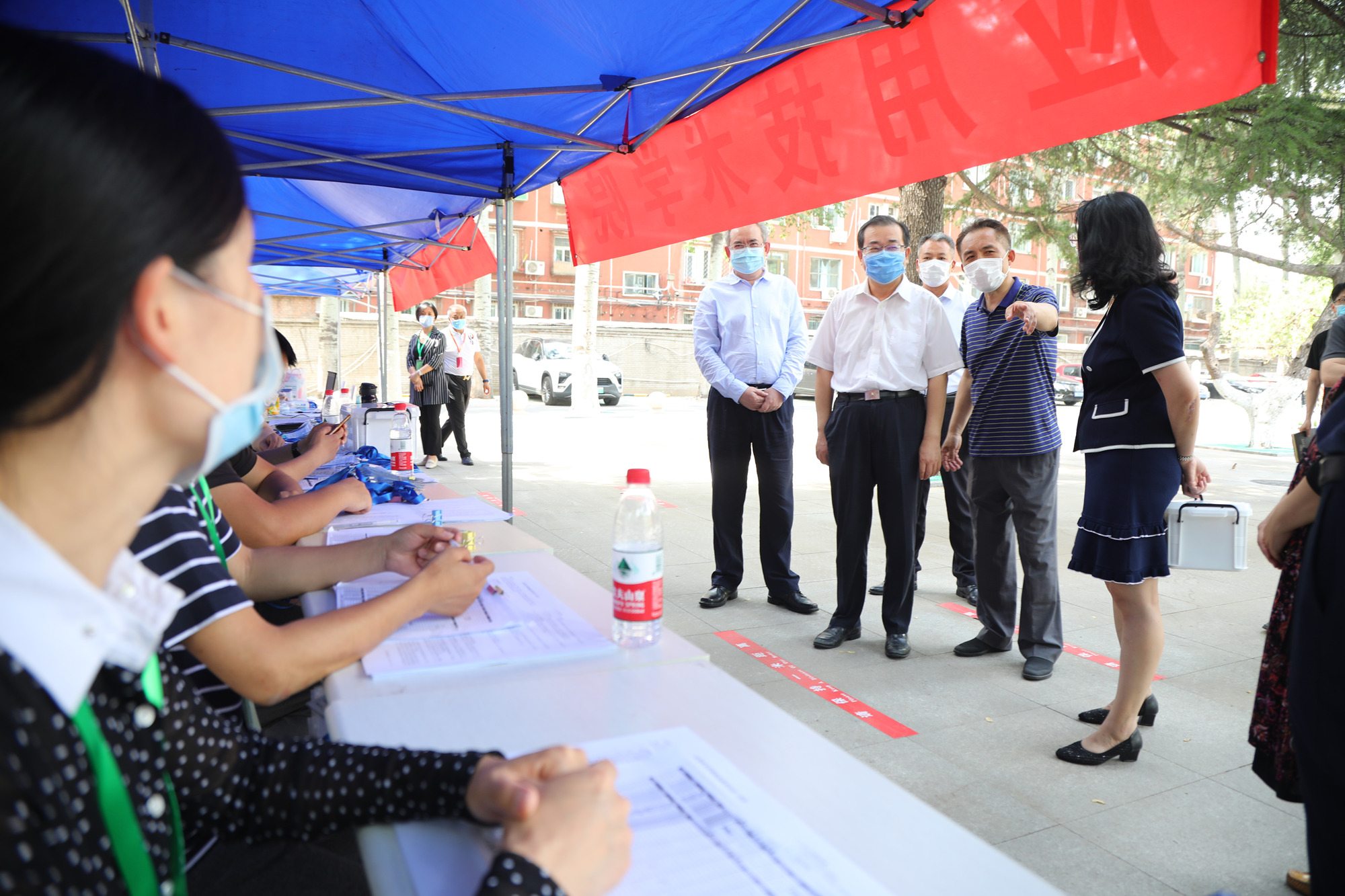刘向兵书记、傅德印校长一行走访慰问各个工作站点的教职员工,询问了解返校学生的生活物资准备和身体健康情况,叮嘱图书馆、校园网络中心等部门做好服务工作,全力配合返校学生及时办理毕业前的各项手续,并向一线工作人员发放慰问品。他们强调,首批毕业年级学生的返校工作将从上午6点开始,至晚上12点结束,工作量很大,加之高温天气,一线的老师们更要注意防暑降温和劳逸结合,保证返校工作平稳有序进行。