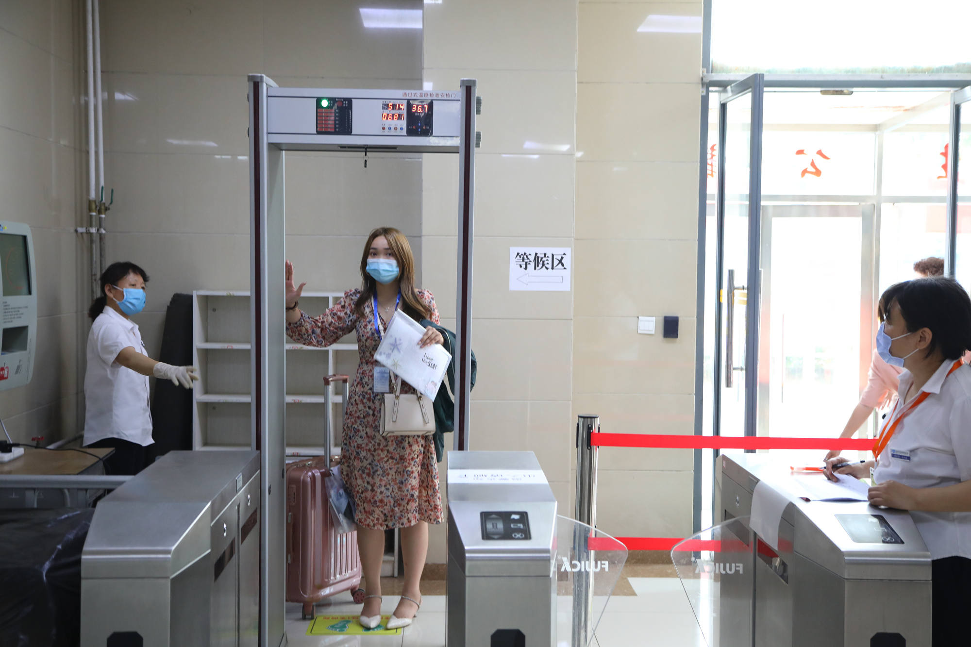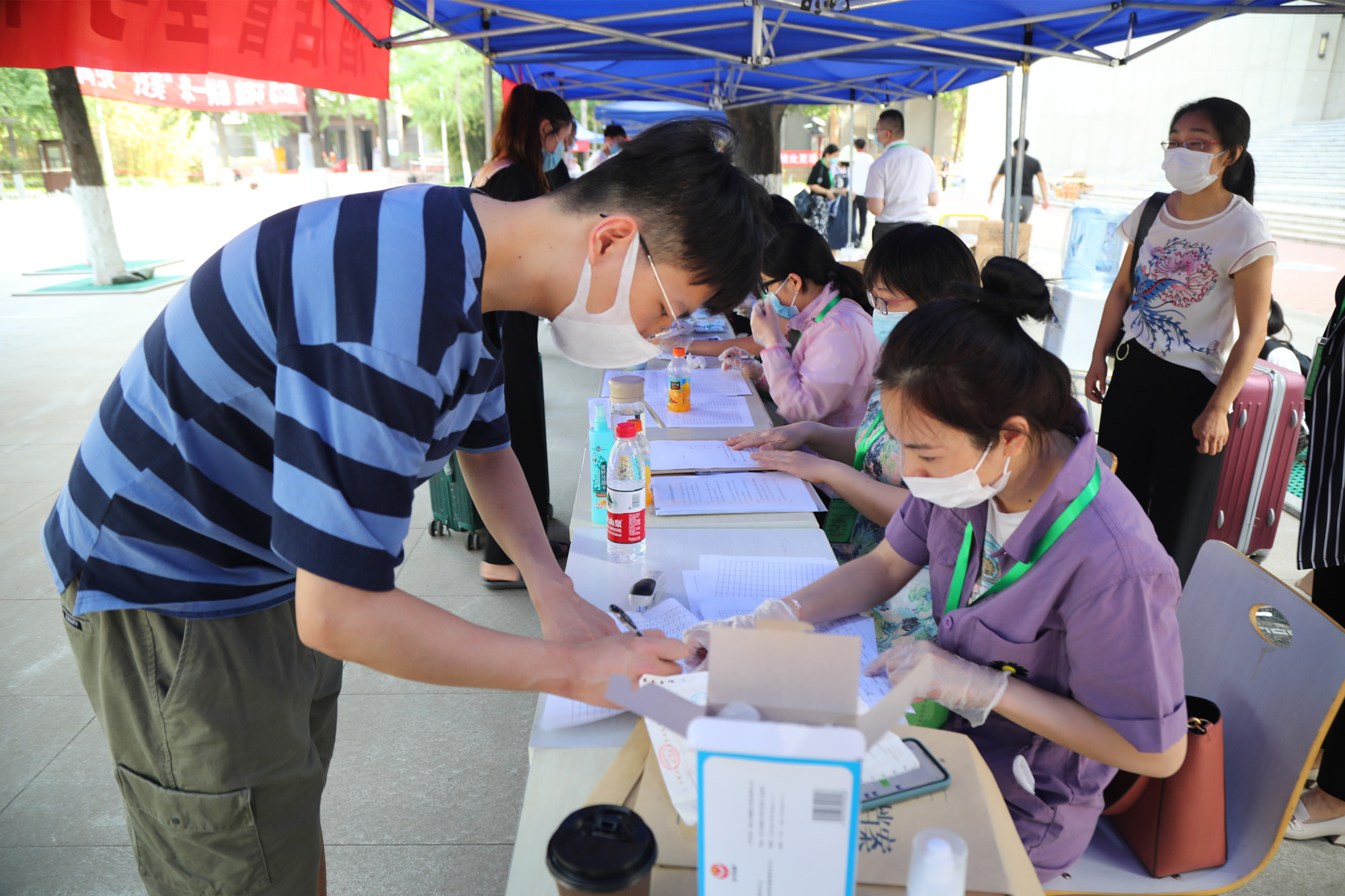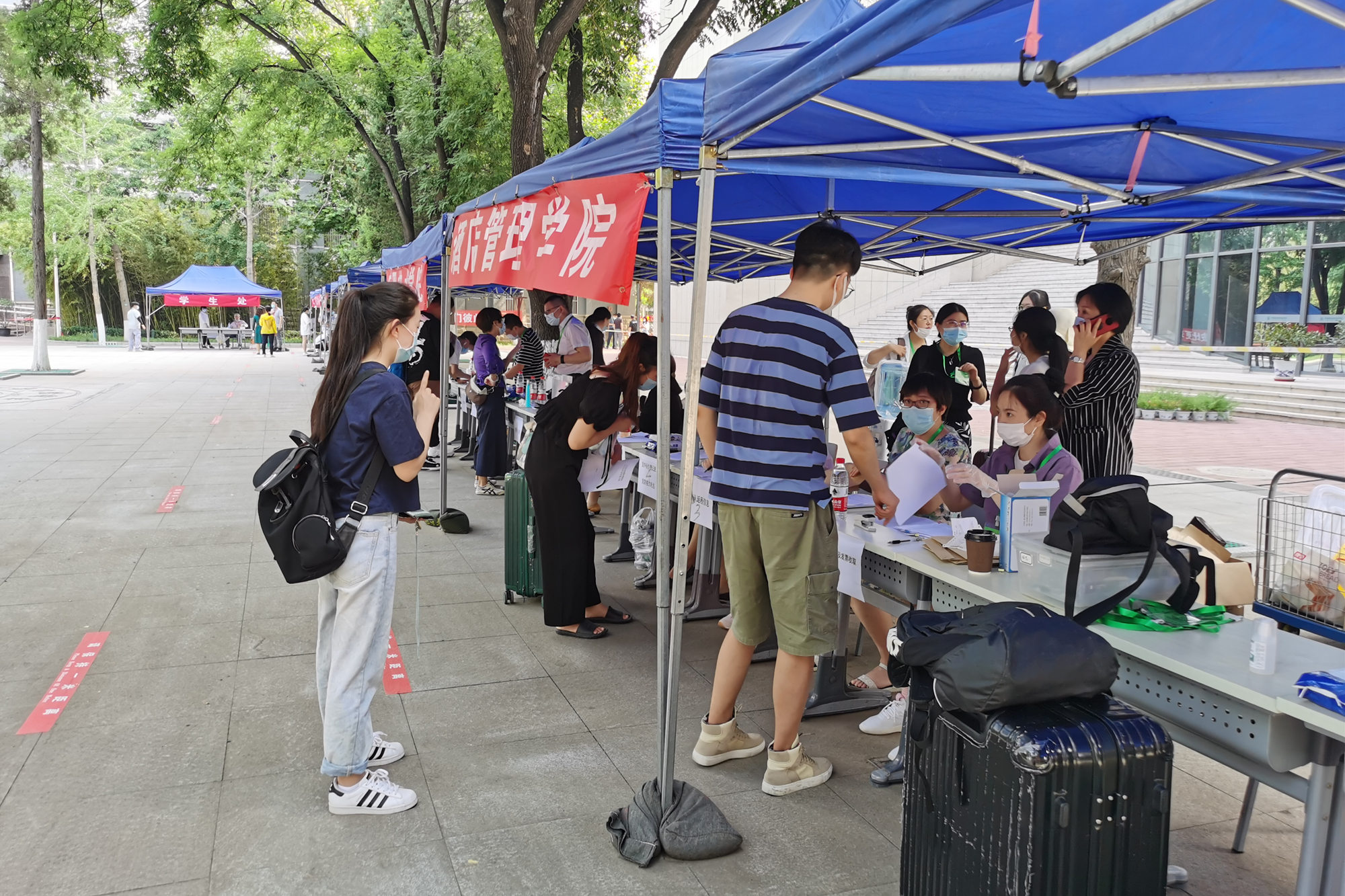 学校高度重视返校学生的安全和健康,在返校准备工作中把疫情防控放在第一位,经过前期反复演练,做实做细校园封闭管理、环境卫生消杀、生活安全等返校工作。在现场工作人员的引导下,返校的学生们有序排队,出示健康码、核酸检测报告等,经身份认证、测量体温后进入学校,再到劳动广场各学院搭设的凉棚内报到,领取学校精心准备的“防疫物资礼包”,办理相关报道手续,然后在学院老师的带领下回到大学生公寓。