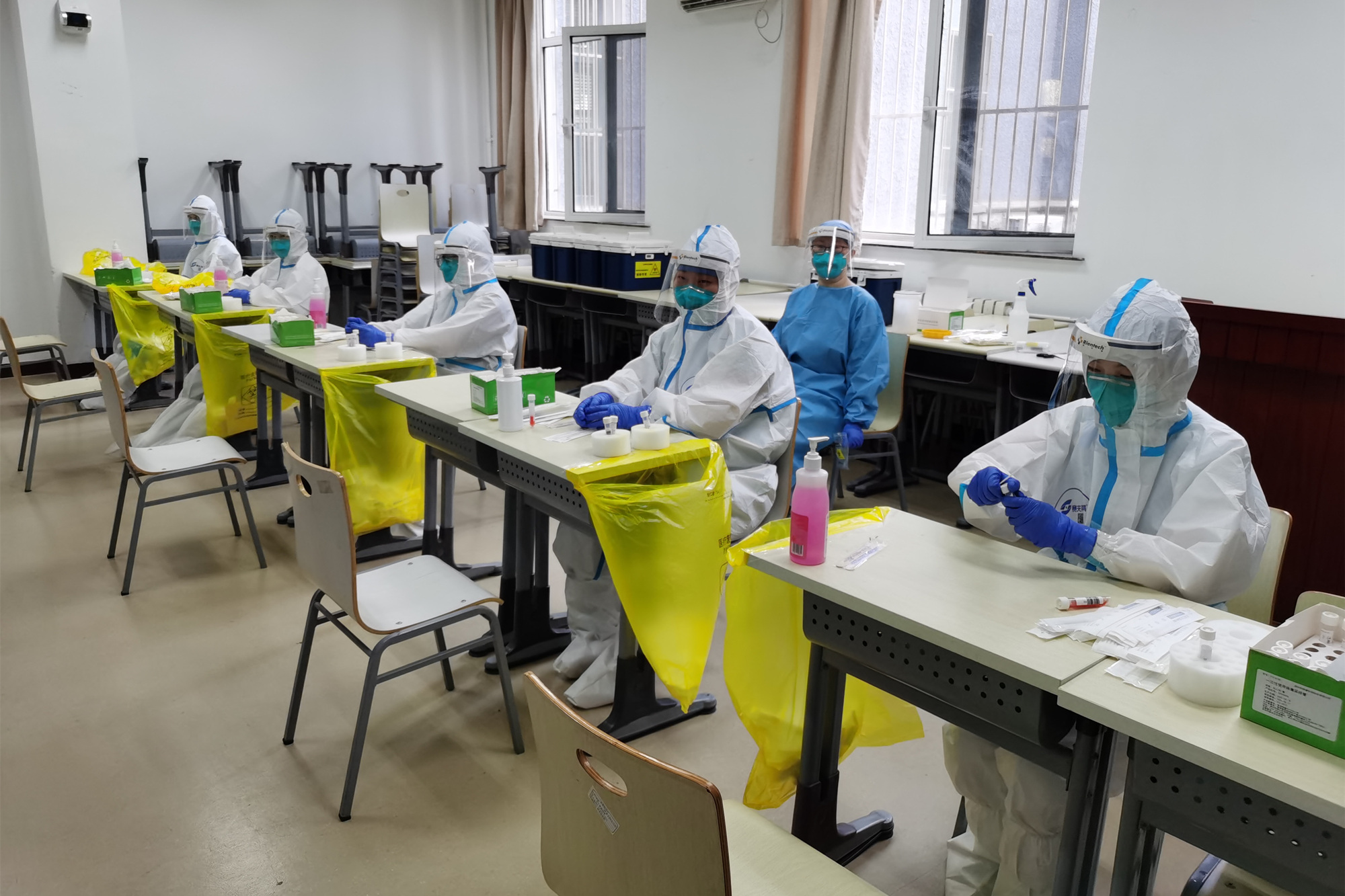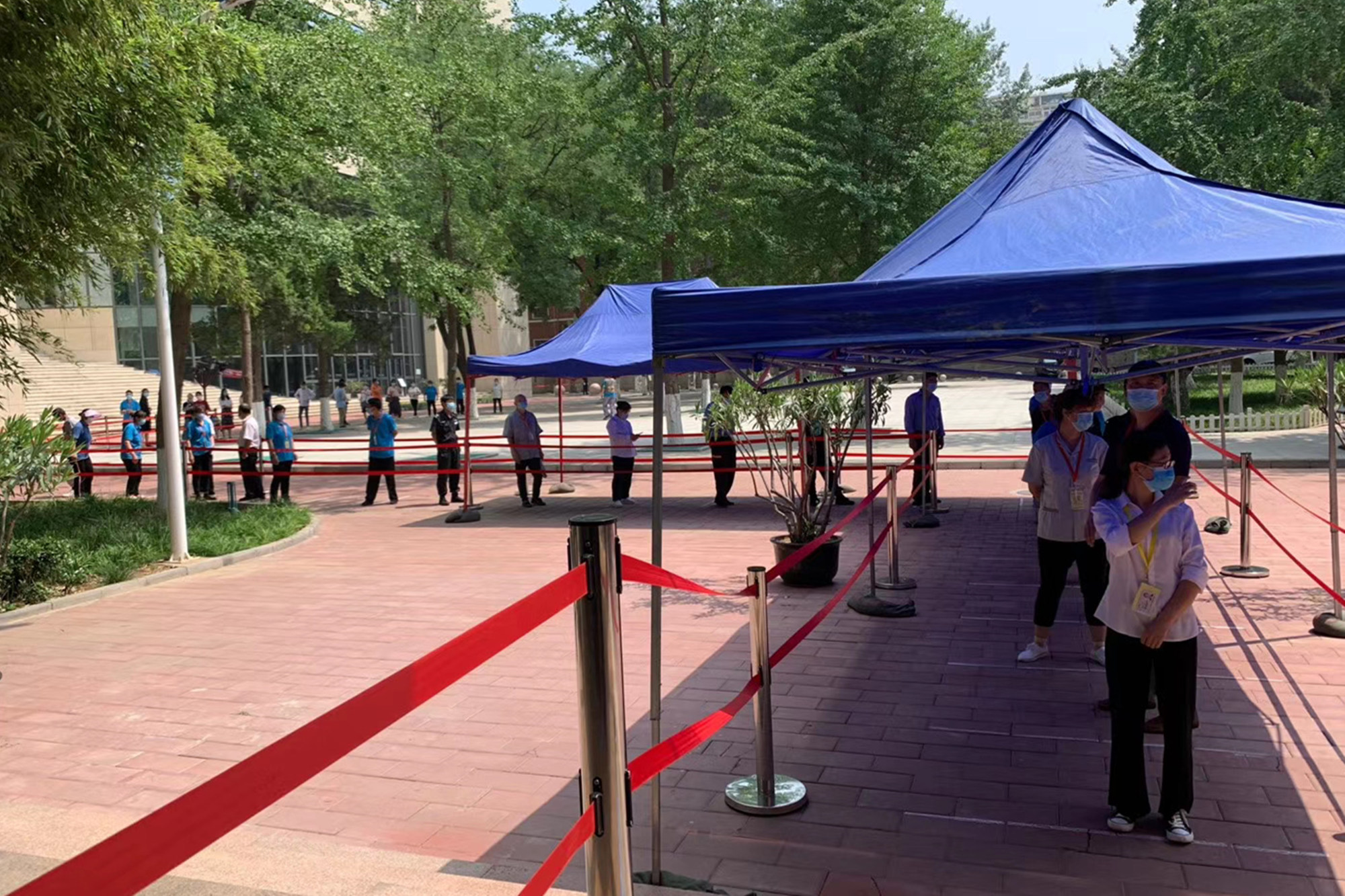6月26日晚,与检测医护人员确定档期后,人事处、后勤管理处、保卫处、资产管理处、党政办公室等部门立即联动响应,连夜组织力量进行人员联络、信息统计、场地布置等准备工作。6月27日下午14点,检测准时开始,参检教职员工在做好个人防护措施的前提下有序入校、排队候检,分批次错峰接受检测。在各方通力配合下,当天下午顺利完成全部检测。