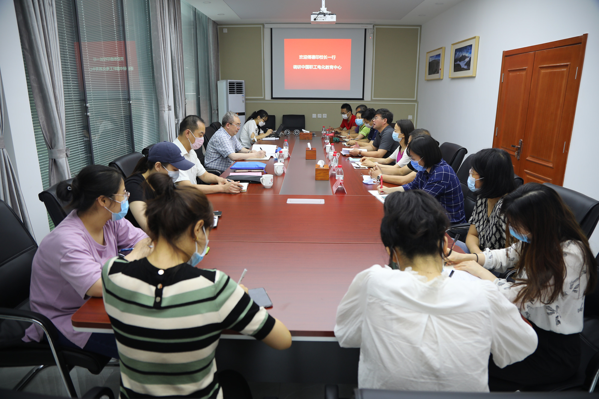 7月9日下午,傅德印校长到中国职工电化教育中心(以下简称“电教中心”)开展调研工作。电教中心各部门负责人、部分工作人员参加调研座谈。