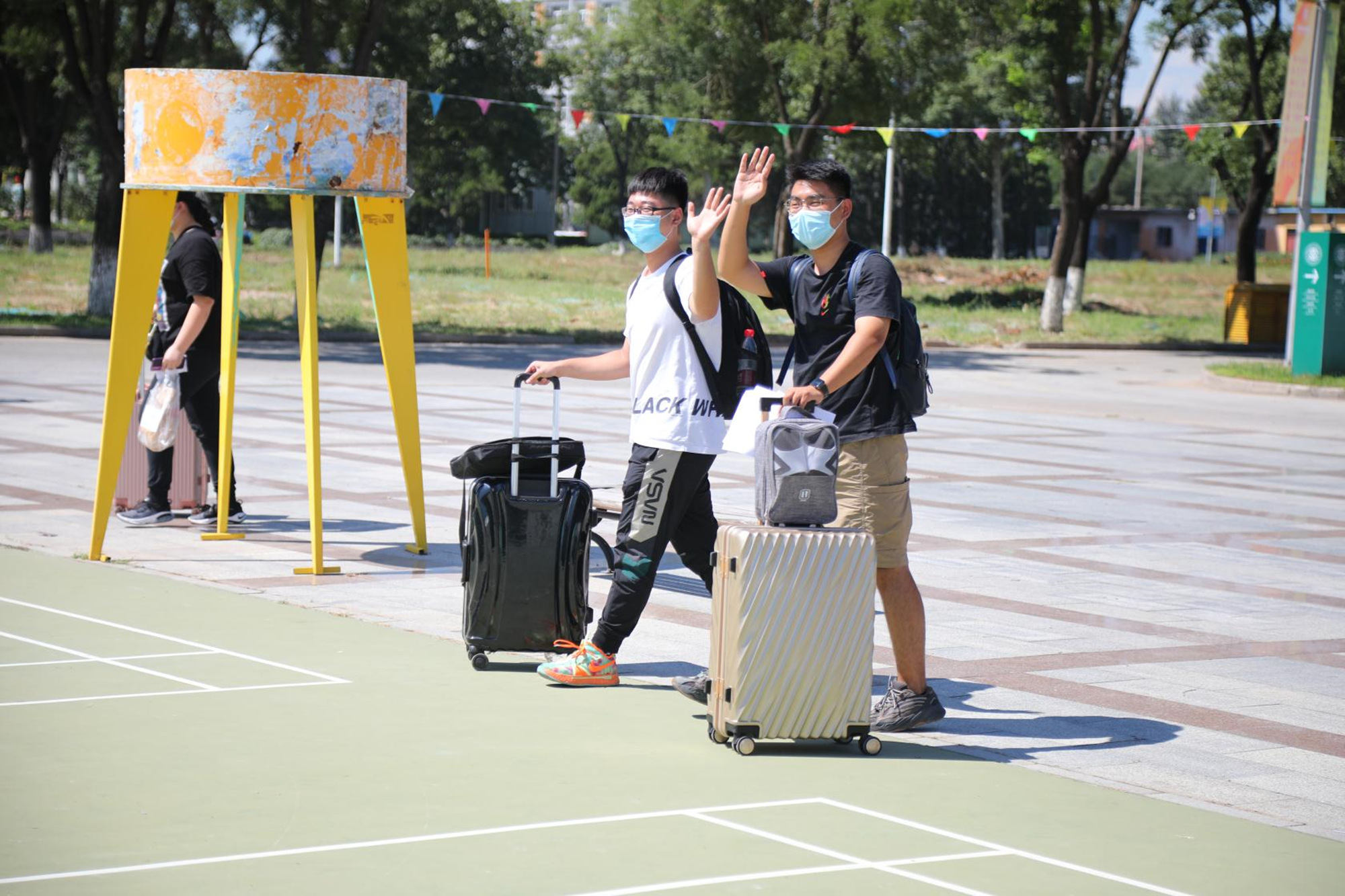 首批返校报到的学生们认真落实疫情防控要求,进校前主动佩戴好口罩,在老师和学生志愿者协助下,完成行李、手部消毒,接受体温检测,并出示健康码通行“绿码”后,依次有序进入校园,开启新学期的学习生活。