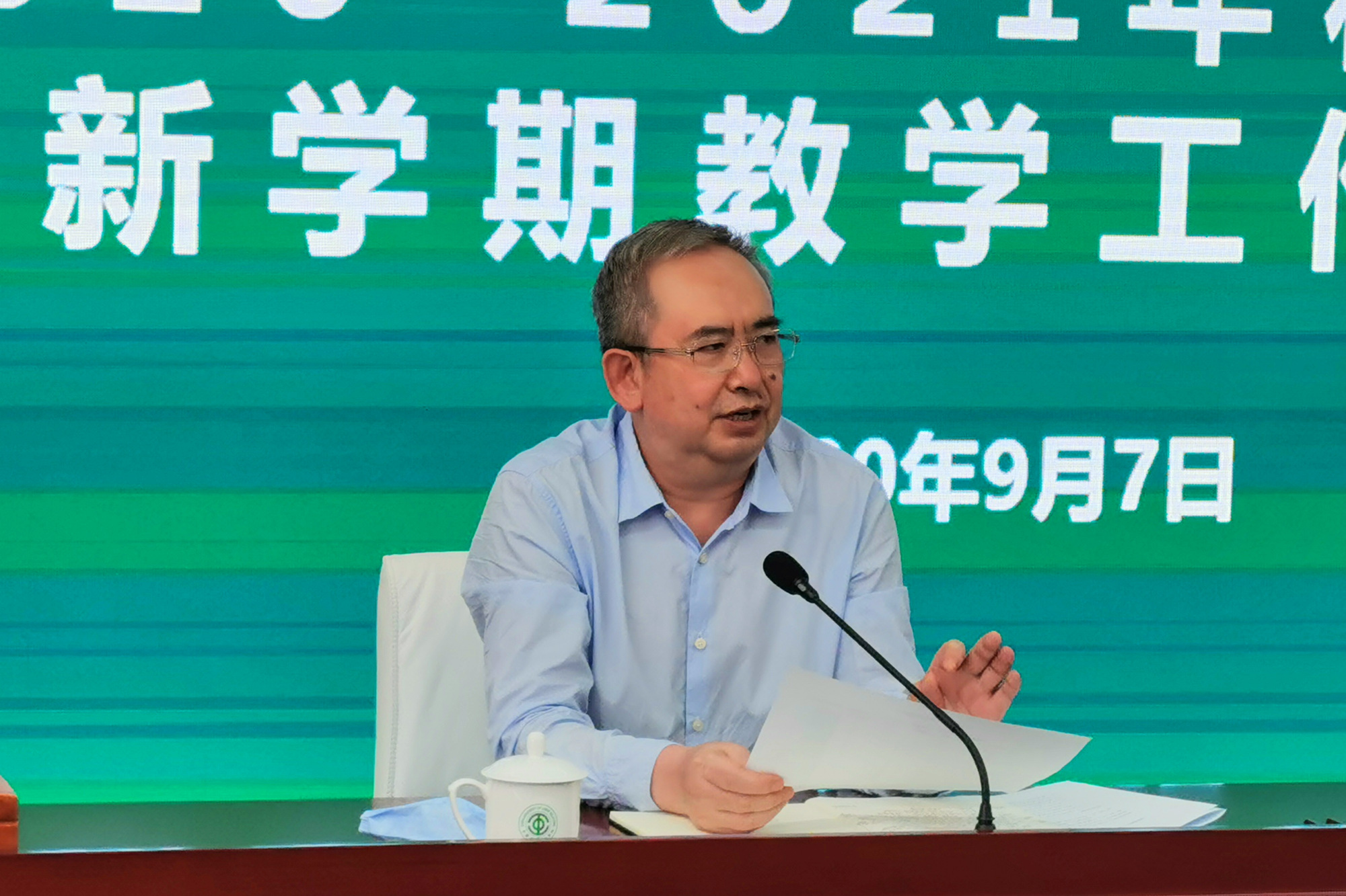 刘玉方副校长在讲话中进一步明确了新学期教学工作的部署与要求。他希望,各教学单位在做好疫情防控常态化的同时,加强日常教学的监控和管理,做到线上线下相结合,切实提高教学质量;做好长线工作计划,在“双万计划”、教学评奖、专业建设和新专业发展方面寻求突破。
