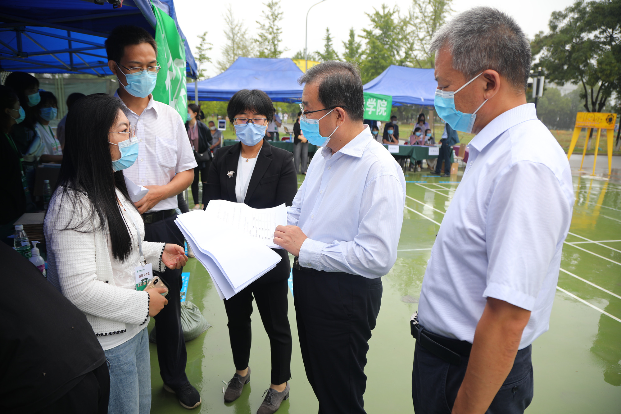 学校领导刘向兵、傅德印、刘玉方、刘丽红、吴万雄、刘路刚,党委常委姜颖,来到两校区迎新现场,亲切看望新生,关心慰问服务在迎新一线的教职工和学生志愿者,查看了解新生录取及报到、贫困生资助、上课条件改善等情况。