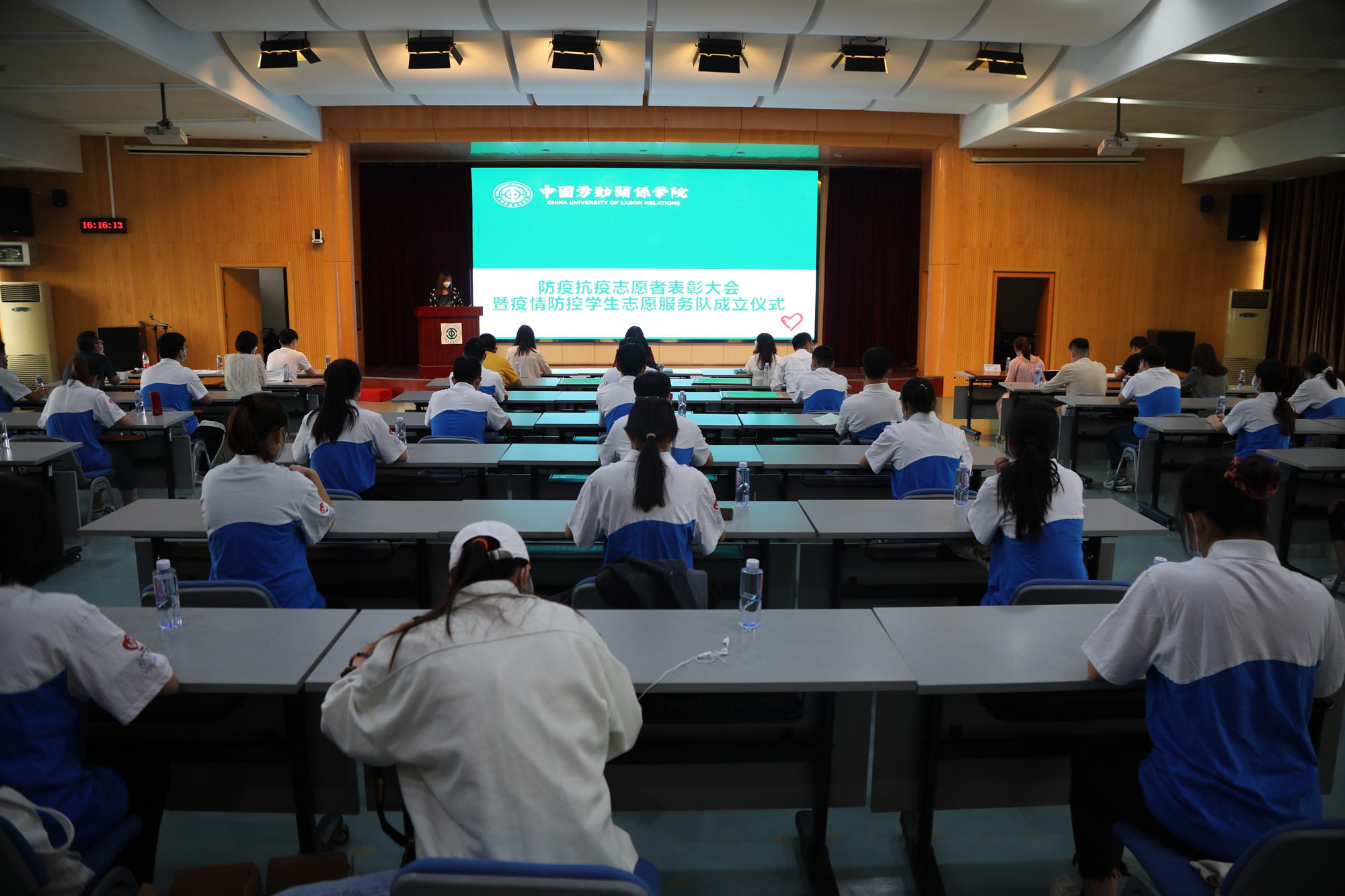 9月21日下午,学校防疫抗疫志愿服务表彰大会暨疫情防控学生志愿者服务队成立仪式在北京校区闻道楼508教室举行。刘丽红副校长出席活动,校团委全体工作人员和各学院团总支书记、辅导员、学生志愿者代表参加活动。