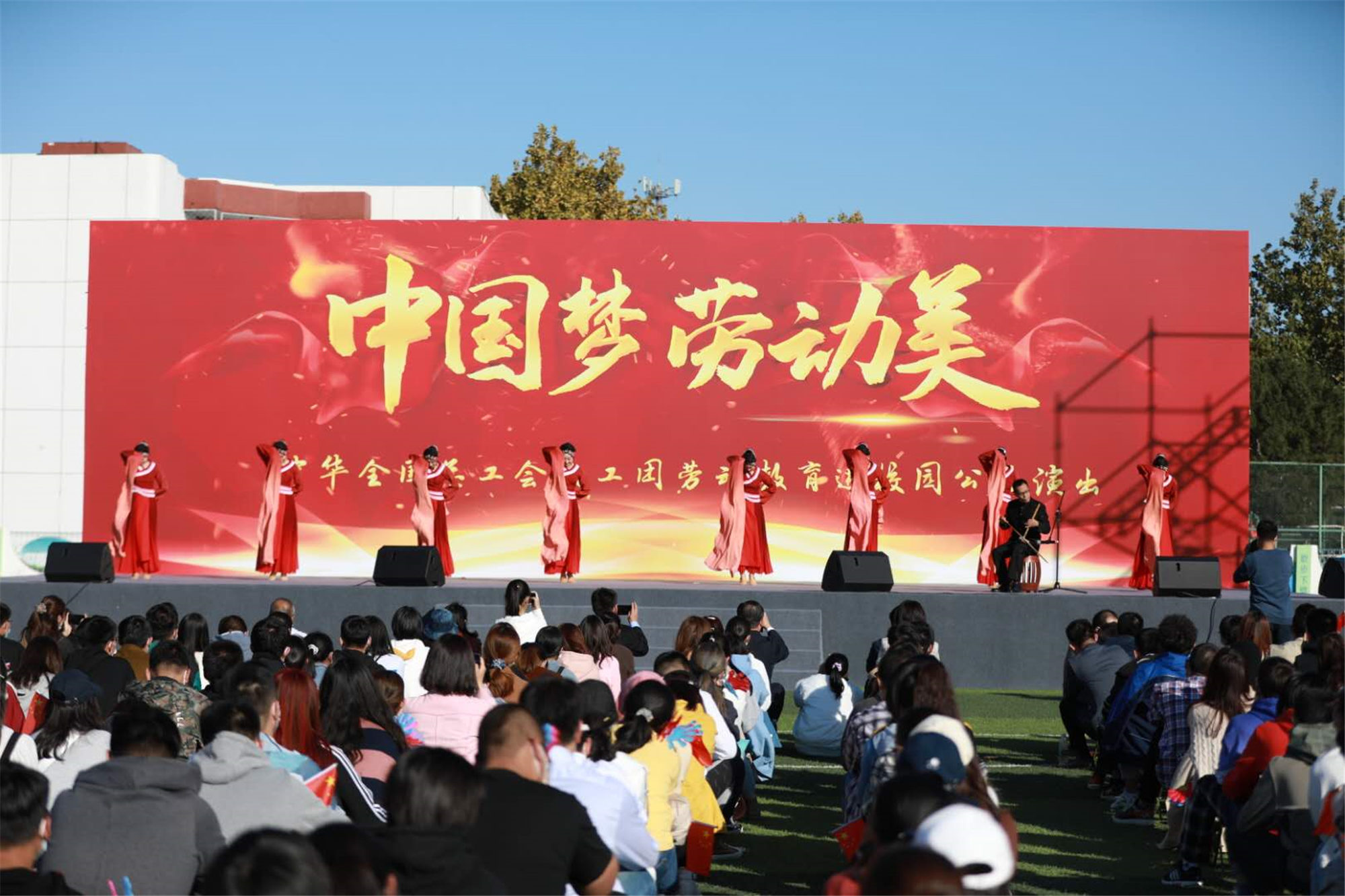 10月16日下午,为认真贯彻落实全国总工会《关于在全面加强新时代劳动教育中充分发挥工会组织作用的指导意见》精神,深化“中国梦 劳动美”主题宣传教育,引导学生尊重普通劳动者,体认劳动不分贵贱,培养勤俭奋斗创新奉献的劳动精神,“中国梦 劳动美”全总文工团劳动教育进校园公益演出活动在ac米兰涿州校区圆满举办。全总文工团党委书记、团长孙文彬,常务副团长陈思思,ac米兰党委书记刘向兵,副校长刘丽红、吴万雄出席活动,与部分职能部门负责人,各学院党总支书记、辅导员等近千名师生共同观看节目。